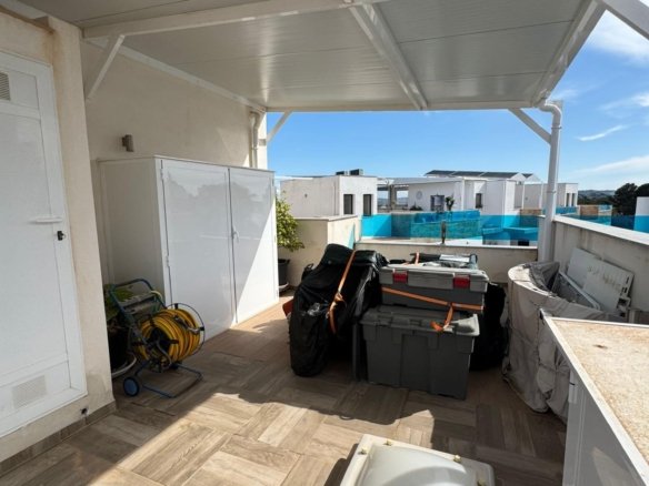 Discover this charming duplex located in the peaceful and sunny town of Bigastro, within the beautiful Vega Baja del Segura region. With a constructed area of ​​145 m², this property is in excellent condition and ready to move into. It features three spacious double bedrooms that offer comfort and natural light to every room. In addition, it has three full bathrooms, ensuring comfort for the whole family or guests. The main attraction is its private solarium where you can enjoy the Mediterranean climate all year round; perfect for relaxing outdoors or hosting family gatherings in the sun. The complex also offers access to a refreshing communal swimming pool, ideal for sharing pleasant moments during the warmer months. The location boasts easy access to public transport thanks to nearby bus lines and is surrounded by excellent schools and educational facilities, making this property not only a welcoming place but also a practical one if you have school-aged children. Don’t miss this unique opportunity to acquire this magnificent townhouse at a competitive price: €238,000! It’s the perfect home, whether as an investment or a permanent residence.