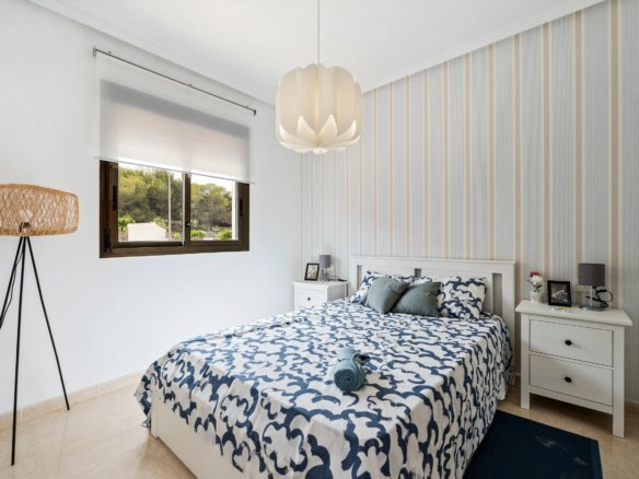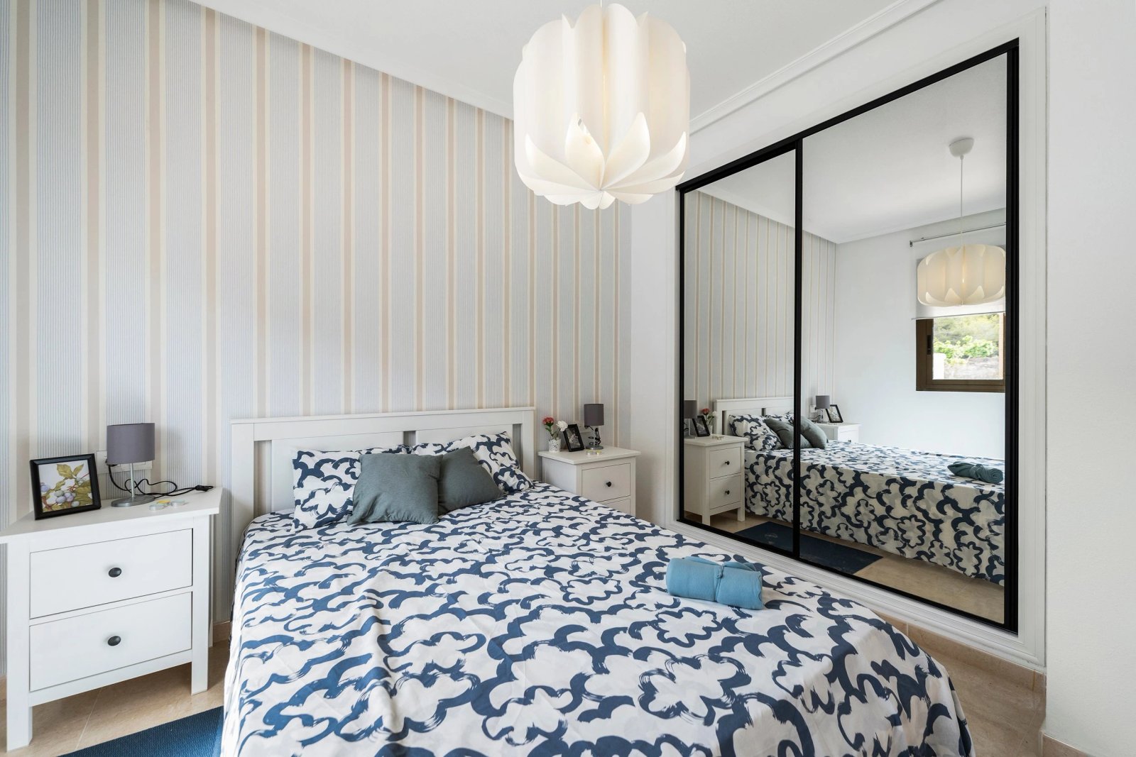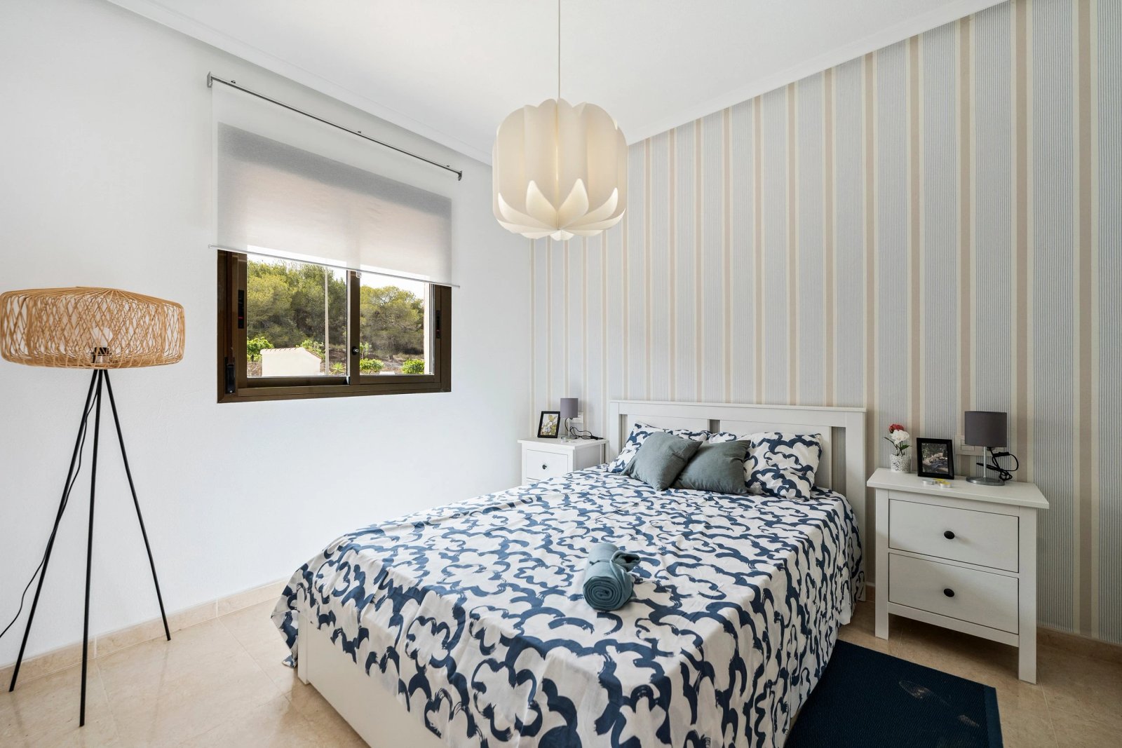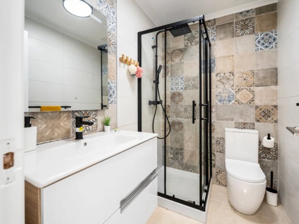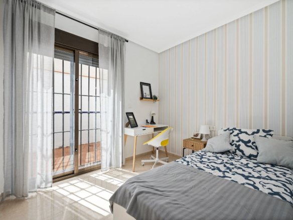 Modern Renovated Townhouse for Sale in Mirador de San Miguel, Costa Blanca South Discover this beautifully renovated two-story townhouse located in the quiet and sought-after urbanization of Mirador de San Miguel, just a short drive from Torrevieja and the Mediterranean beaches. This charming townhouse offers the perfect blend of modern comfort and Mediterranean lifestyle. With 3 spacious bedrooms and 3 bathrooms (two of them en-suite), the property provides both privacy and functionality for families or those looking for a peaceful retreat in the Costa Blanca South. On the ground floor, you’ll find a bright and spacious living room, a fully equipped kitchen, one bedroom with direct access to the rear porch, a bathroom, and a separate laundry room.The upper floor includes two additional bedrooms, each with an en-suite bathroom, and access to a large roof terrace — ideal for sunbathing or enjoying a relaxing evening drink. The exterior features an 82m² front garden, a private underground parking space, and a storage room. The residential complex also includes a large communal swimming pool, perfect for enjoying the warm Mediterranean climate. Located just 15 minutes from the beach and only 5 minutes from local shops, restaurants, and bars, this property offers a perfect combination of tranquility and convenience. It’s also close to several renowned golf courses, making it an excellent choice for golf lovers and anyone seeking a holiday home or permanent residence in Spain. Key Features Fully renovated and sold furnished 3 bedrooms, 3 bathrooms (2 en-suite) Large roof terrace and sunny private garden Communal swimming pool Underground parking & storage room Peaceful residential area near San Miguel de Salinas Only 15 minutes from the beaches of Torrevieja and Orihuela Costa Don’t miss the opportunity to buy this stunning modern townhouse in Costa Blanca South — ready to move in and enjoy the Mediterranean lifestyle!