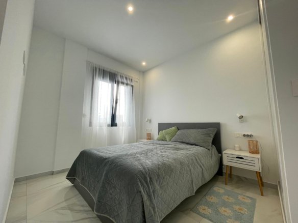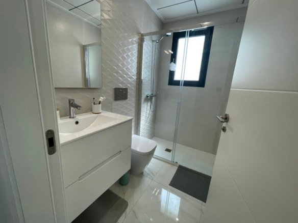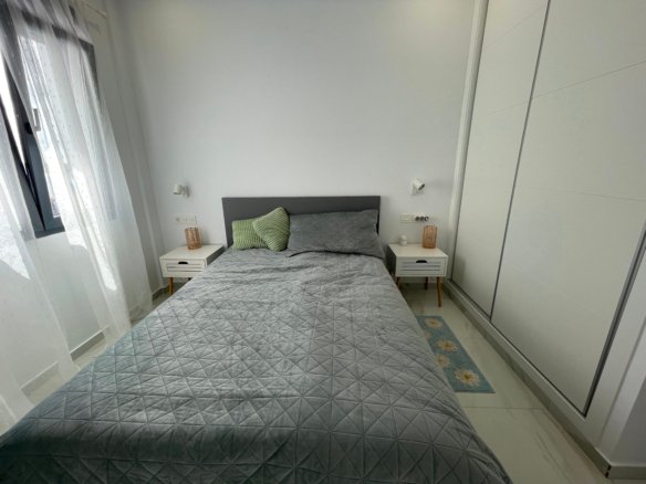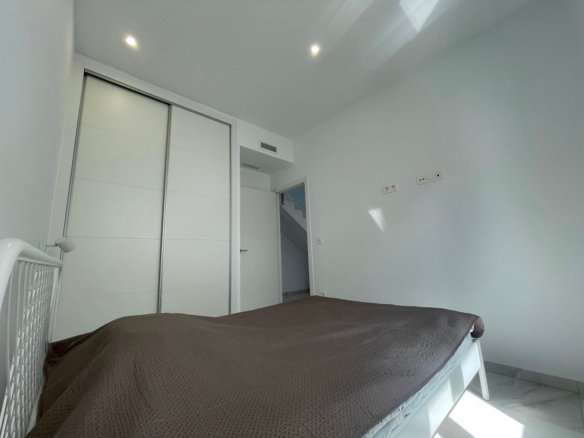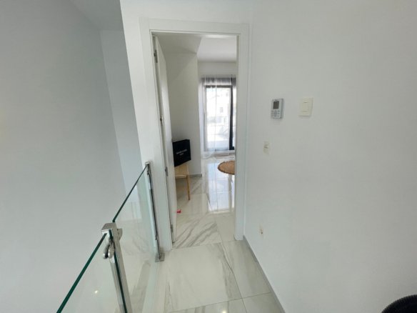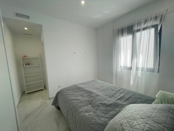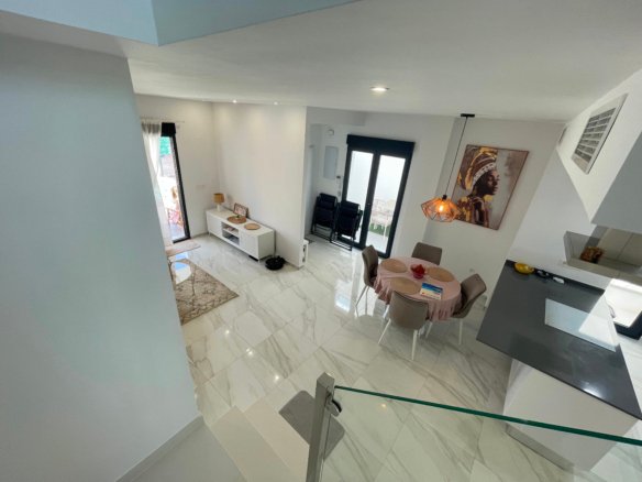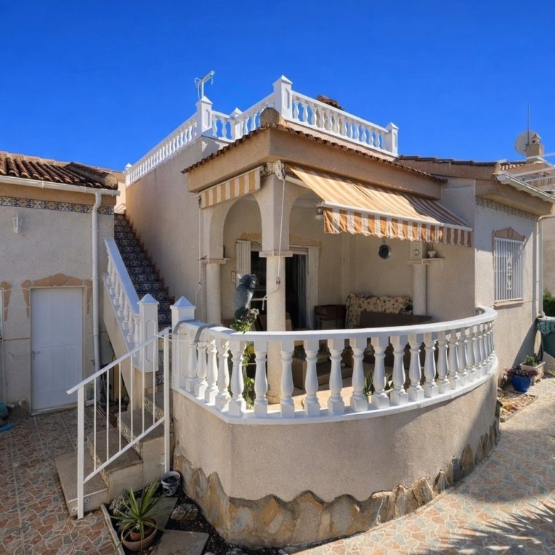 This stunning villa is in perfect condition and offers a contemporary design that prioritizes comfort and style. The open-concept living and dining area, along with a modern kitchen, creates a welcoming space that’s ideal for both everyday living and entertaining guests. On the ground floor, you’ll find a spacious bedroom with built-in wardrobes, accompanied by a full bathroom for added convenience. Upstairs, a charming landing leads out to a small terrace, an ideal spot to enjoy your morning coffee or relax in peace. The second bedroom is generously sized and comes with its own elegant en-suite bathroom. At the end of the hallway, the master bedroom provides a luxurious retreat, complete with an en-suite bathroom and direct access to a private terrace. This sun-filled space is perfect for unwinding and soaking up the beautiful Mediterranean climate. The villa is equipped with air conditioning and is move-in ready, ensuring you can enjoy comfort and quality from day one. Nestled in the heart of the Costa Blanca, Benijófar is a charming and well-connected town in the province of Alicante. With its laid-back Mediterranean atmosphere, Benijófar strikes the perfect balance between traditional Spanish character and modern amenities. Just a short drive from the stunning beaches of Guardamar and Torrevieja, and with all essential services—such as supermarkets, restaurants, cafés, and pharmacies—within walking distance, it’s an ideal destination for both year-round living and holiday getaways.