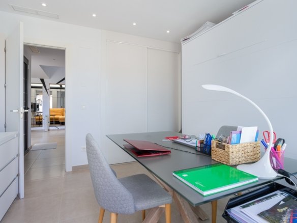 Modern Villa with Heated Pool and Open Views in Benijófar – Costa Blanca South This contemporary villa, built in 2018, is located in a prime position in Benijófar overlooking a protected green park, offering uninterrupted views and privacy. The property features a bright open-plan living space with a modern kitchen and direct access to the terrace and private heated swimming pool. There are three double bedrooms, each with an en-suite bathroom. The home also benefits from a spacious rooftop solarium with panoramic views, solar panels, an electric vehicle charging point, and is sold fully furnished. Situated within walking distance of local amenities, 10–15 minutes from the beaches of Guardamar and approximately 30 minutes from Alicante Airport, this property is ideal as a permanent home, holiday residence, or investment on the Costa Blanca.
