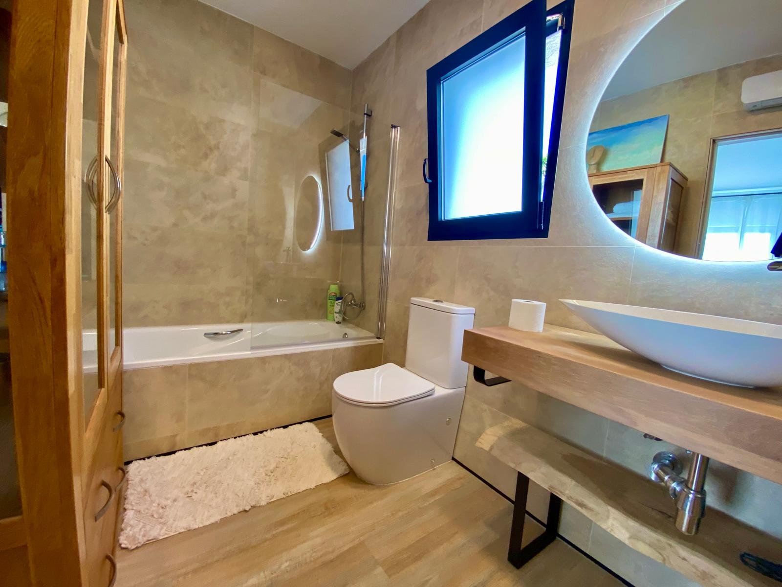 Enjoy the Mediterranean charm in this spectacular Villa in Cumbre del Sol! A beautiful traditional-style Villa, with a magnificent complete renovation in 2024, featuring a contemporary style, in the exclusive urbanization of Cumbre del Sol. This lovely Villa is spread over two floors; on the upper floor, we have two double bedrooms, each with en suite bathrooms, a spacious and bright living-dining room with an open, fully equipped kitchen and access to a lovely terrace with a Jacuzzi and magnificent views of the Mediterranean. On the ground floor, we find a large bedroom and a full bathroom, as well as another living-dining room and a service kitchen that supplies the pool area. Outside, we have a low-maintenance garden, two storage rooms, a great swimming pool to cool off in the summer, with a terrace ideal for enjoying the sun and another chill-out style terrace, perfect for relaxing and enjoying dinners or meals in the summer. The entire villa is equipped with double glazed windows that let in plenty of light, air conditioning (hot/cold) and thermal and acoustic insulation in all walls and ceilings.