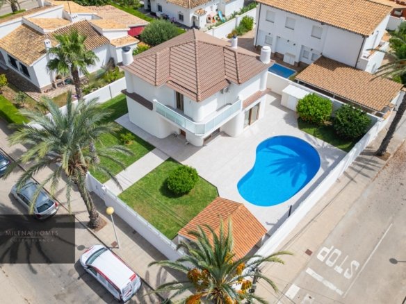 We present to you a unique villa, created for those who seek more than just a house: a home where you can enjoy, breathe, and live unforgettable moments. Located on a private plot of 514 m², this property combines modernity, spaciousness, and privacy in a serene and welcoming environment. With 156 m² spread across two floors, every corner has been designed to bring warmth, style, and comfort. Here, every detail matters… and can be felt. ✨ Interiors that invite you to stay As you enter, natural light envelops everything. The villa offers spacious, harmonious, and lively areas: 3 spacious bedrooms, designed for rest and relaxation 3 full, elegant, and modern bathrooms, where well-being takes center stage An open kitchen with an island, perfect for cooking, chatting, and sharing A bright living-dining room, with direct access to the outdoors and an atmosphere that invites enjoyment Fully equipped independent laundry room Storage room, ideal for keeping the home organized and functional The materials have been carefully selected to create a modern, fresh, and timeless style that captivates at first sight. An exterior designed for enjoyment The outdoor area is a true oasis, created to experience the Mediterranean at its fullest: Private pool, where days feel longer and summer seems eternal Barbecue area, perfect for nights with friends, laughter, and good times Low-maintenance gardens, to enjoy without worries Parking space on the plot, convenient and practical And to elevate the experience even further, the home includes premium features such as: Motorized blinds Air conditioning High-end fully equipped kitchen Excellent thermal and acoustic insulation ✨ This villa is not just a home: it’s a lifestyle. A place to feel at peace, to gather your loved ones, and to enjoy every day as you deserve. Contact us and come discover it. You’ll fall in love.
