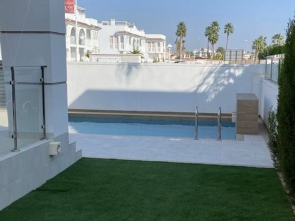 Luxury modern villa with a large plot and private garden, including a swimming pool and private parking.It has 3 bedrooms and 3 bathrooms, located on two floors, with a magnificent solarium, the total area of the house is 137 m2, the terrace area is 114m2, the plot area is 312m2A gated Mediterranean complex with a large green area and three swimming pools, located in the elite part of Ciudad Quesada, Donna Peppa district, surrounded by new modern houses. The bungalow has its own yard and its own Parking. Nearby there are several supermarkets, 3 Schools, kindergartens, a Sunday market with the freshest farm products, bars and restaurants within walking distance!