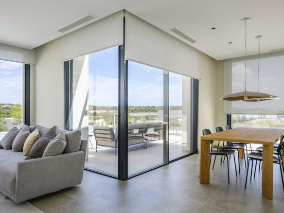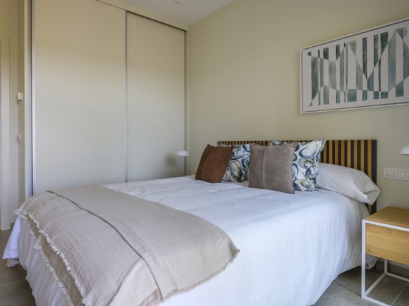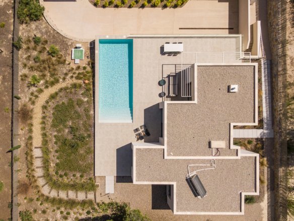 The exclusive frontline golf villas of the Ciruelo Community are located in a privileged location on Las Colinas Golf & Country Club golf course. The Ciruelo Community is made up of different villas, with a carefully studied location to optimise their orientation and views, as well as to ensure the enjoyment of the Mediterranean sun and light. This community has been developed following the Bisbita villa model, which has a large plot of 976 m² with 200 m² of constructed area and a private swimming pool of 40 m². It includes three bedrooms, two bathrooms —an en suite and a guest toilet—, a fully equipped open plan kitchen and a closed garage with two parking spaces.Its one-floor distribution and its large windows maximise its integration into the environment and facilitate outdoor living. Conceived for the enjoyment of the Mediterranean climate and landscape, this exclusive villa is very unique within the residential complex, both for its avant-garde design and its high-quality standards.The project is the work of the architectural studio Abeman Arquitectos.