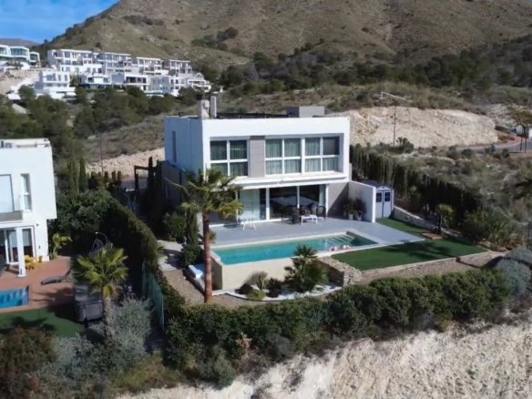 Let yourself be captivated by this spectacular contemporary villa located in Balcón de Finestrat, one of the most exclusive residential areas of the Costa Blanca. A home where modern design, efficiency, and Mediterranean lifestyle come together to offer a unique residential experience, just minutes away from the beaches of Benidorm and Villajoyosa.Built in 2018, the property sits on a 636 m² plot and features 224 m² built, distributed over two floors connected by a private elevator, providing comfort and accessibility in every corner of the home.The interior stands out with its spacious and bright areas, including an elegant living-dining room that opens to the outside and a designer open-plan kitchen with a central island, fully equipped. The dwelling has 3 bedrooms with en-suite bathrooms, and a guest toilet on the ground floor, making a total of 4 bathrooms.Among its qualities, the following stand out:Air conditioning through ducts and underfloor heating throughout the homeDouble-glazed windows and electric blindsModern lighting and high-end finishesIndependent laundry areaEnergy certification A, guaranteed efficiency and sustainabilityThe exterior is undoubtedly one of its main attractions. The villa offers a private infinity pool, a low-maintenance Mediterranean garden with automatic irrigation, and spacious covered and uncovered terraces, facing south to enjoy the sun all day long and panoramic sea views.The property is completed with a covered parking area for two vehicles, equipped with an automated pergola, and is located in a quiet, private, and secure environment, with quick access to the AP-7 highway, golf courses, shopping centers, international schools, and all services.An elegant, modern, and efficient villa, perfect as a primary residence or a high-level second home, in one of the most sought-after locations in Finestrat.✨ A unique opportunity to live the Mediterranean in style.