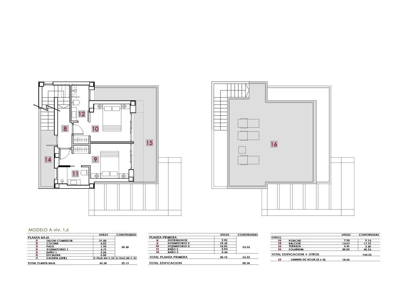 Completed in 2022, this fabulous 3 bed (potentially 5), 4 bath contemporary style new-build villa is the finest example of the Don Benito style villas, incorporating every conceivable ‘extra’ and the very highest specification. Conveniently located in the El Galan urbanisation nr Villamartin and close to all amenities and numerous golf courses, it’s situated only a few minutes to both the Villamartin Plaza and La Fuente Commercial Centre as well as being less than a 7 minute drive from the fabulous La Zenia Boulevard and those amazing Costa Blanca beaches!Internally, this incredible property comprises two stories with an additional under-build and rooftop solarium, all of which benefit from hot/cold air conditioning. On the ground floor you will find one of the three double bedrooms together with a full family bathroom including shower. There is a spacious open-plan kitchen and dining area incorporating a well appointed modern kitchen equipped with all of the modern facilities you would expect and giving access out to the covered utility and storage area which also houses a washing machine. The lounge area enjoys full height, double-glazed sliding doors along the length of the external wall giving direct access out onto the sun drenched covered terrace area and large 6x3m private swimming pool. Fully tiled and privacy screened, the outside area offers usable space around the entirety of the property and incorporates a useful utility area to the rear as well as a covered car parking space and driveway to the left of the villa. This outside space is what Spanish living is all about – sunshine, socialising and relaxing with a fantastic pool (with outdoor shower) to take a dip in when the sunshine gets too much!Stairs lead to the first floor accommodation which features two double bedrooms both of which benefit from their own en-suite bathrooms, fitted wardrobes and retractable insect window screens. The master bedroom also offers access via glazed sliding doors onto a private balcony – the perfect spot to enjoy your morning cafe au lait. A second internal stairway leads to the amazing private rooftop solarium complete with aluminium pergola for shade, a BBQ area also complete with pergola and a handy shower area. This privileged spot offers the perfect relaxation and entertaining space with views across the parkland – as well as guaranteeing the perfect year round sunbathing spot.In addition to the superb internal and outdoor living accommodation, this fantastic villa also benefits from an incredible 56 sqm under-build which was a built as part of the original construction as a developer ‘extra’. This incredible space is fully finished and comes complete with a fully fitted bathroom. Currently being used as a workshop and a music & cinema room, this space offers the flexibility to be used as additional self-contained guest accommodation and would easily provide two further bedrooms in addition to the existing three, potentially making this a five bedroom, four bathroom luxury home……. Or you could just leave it as every husbands (and wife’s!) dream ‘Man Cave’!Location, quality and value combine to make this property a truly exceptional prospect for anyone seeking the ultimate villa with easy access to all that the Costa Blanca has to offer – walking distance to the best bars, restaurants and shopping and only a few minutes drive from the Mediterranean and those golden beaches – what more could you want?The property comes part furnished with most items included as shown.