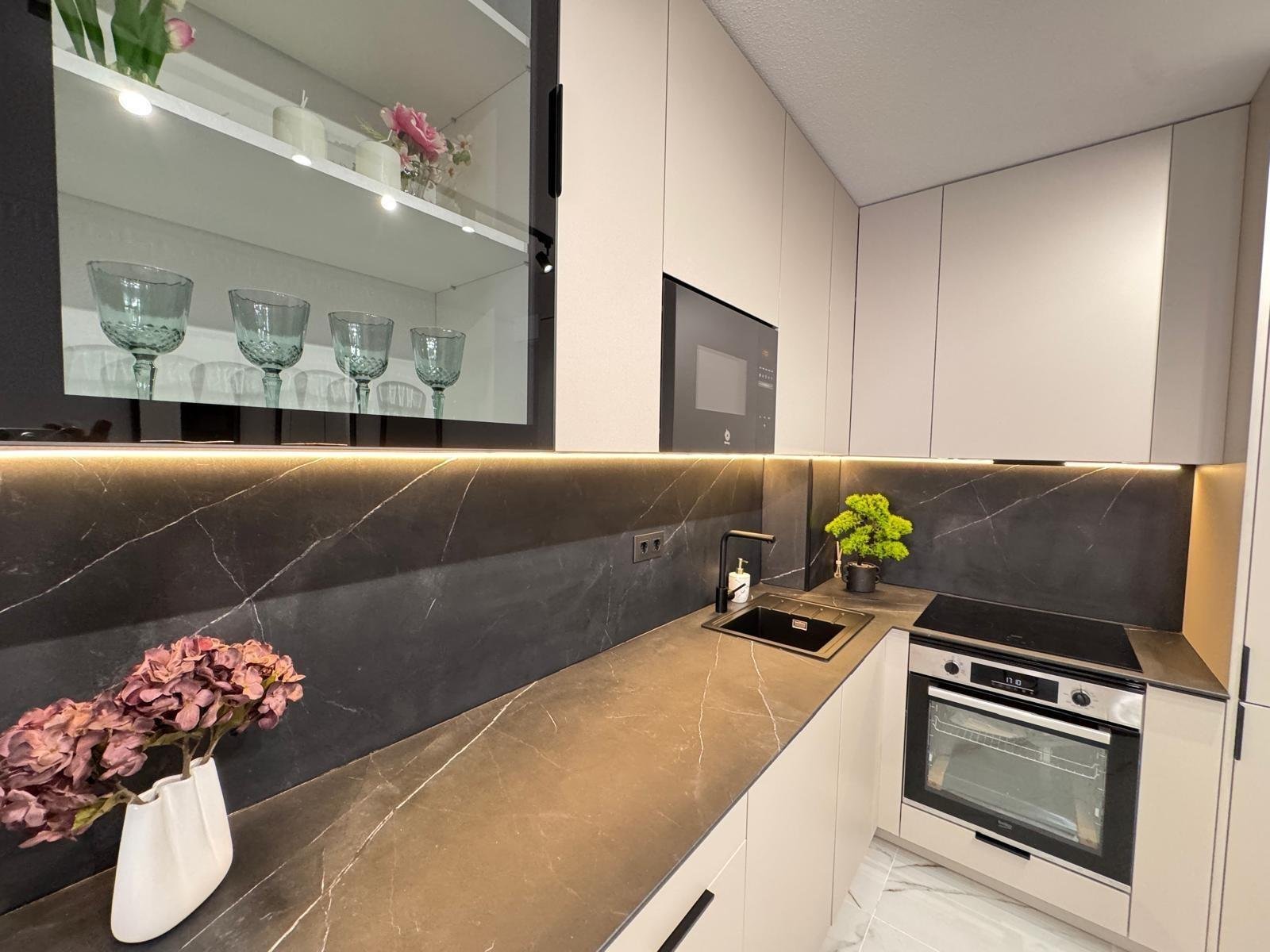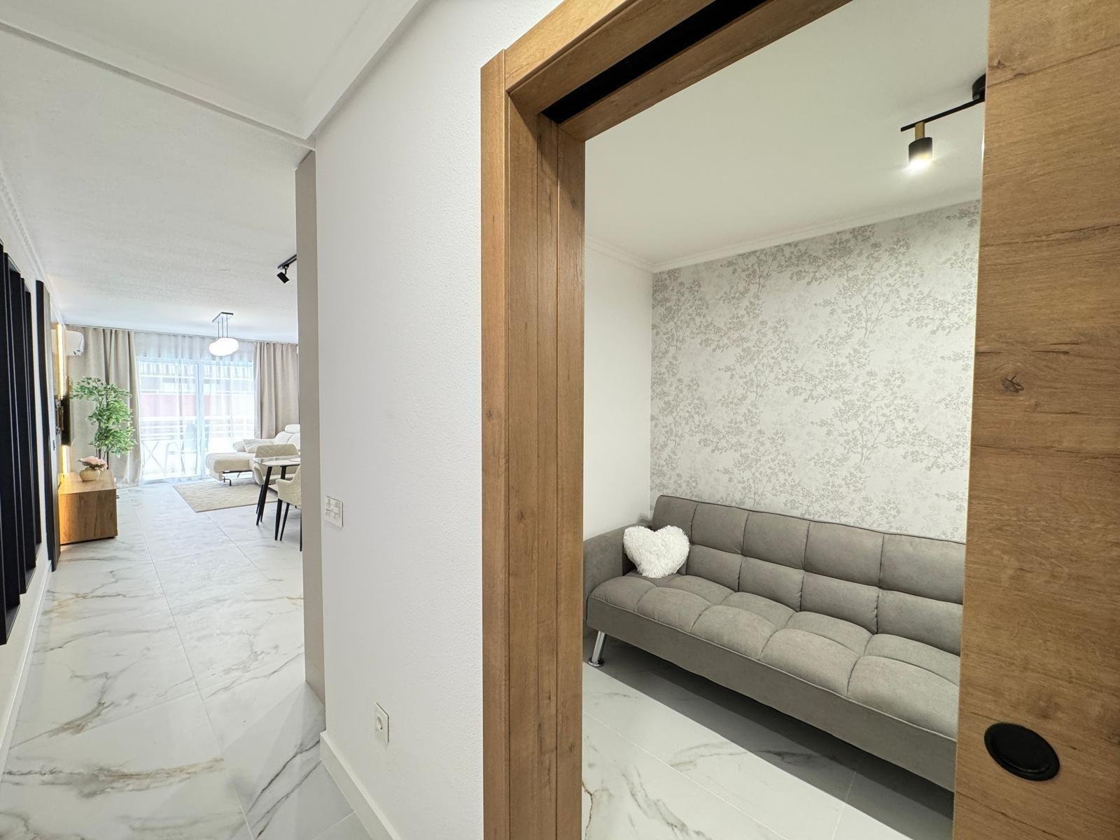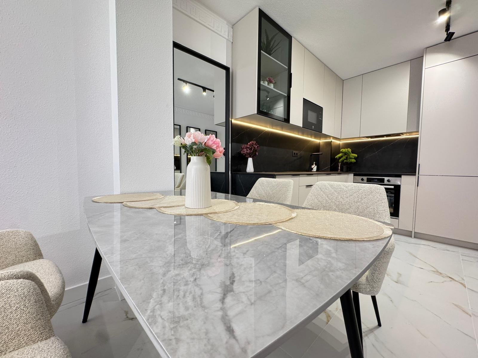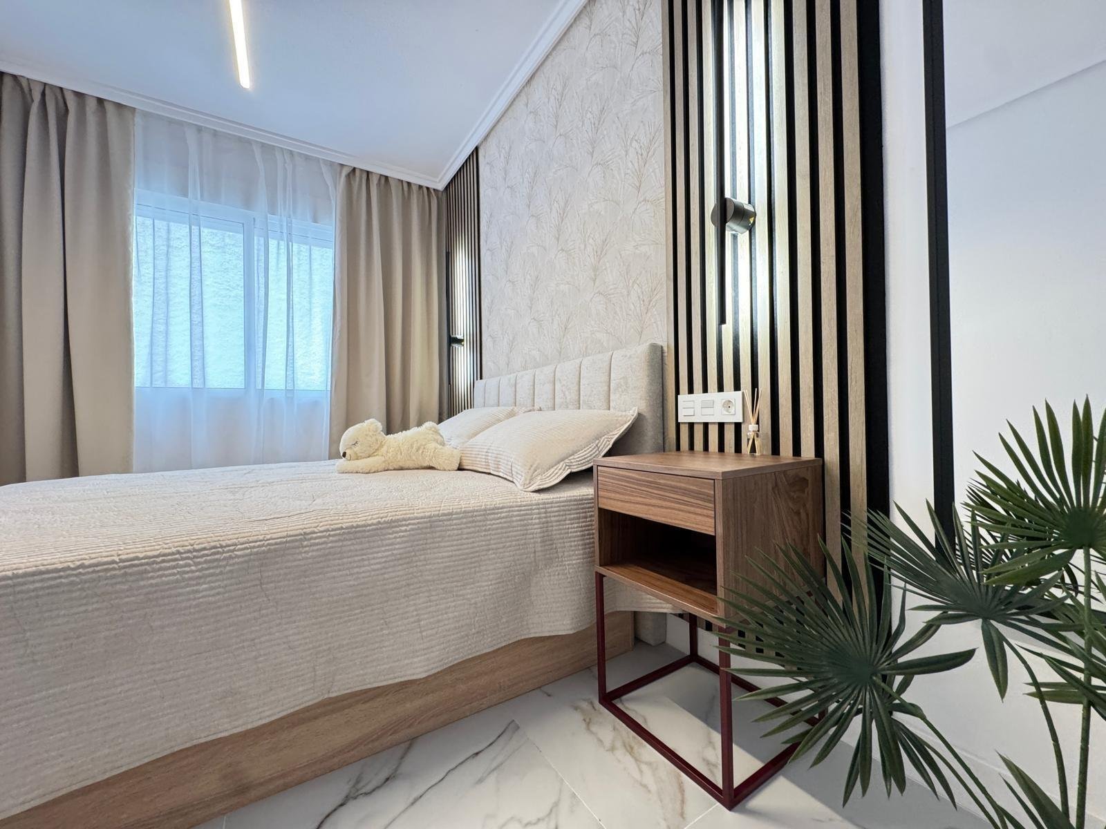 Completely Renovated 4-Bedroom Apartment 50 Meters from the Sea – Calle Palangre, Torrevieja We present this fantastic opportunity to acquire a completely renovated, brand-new apartment located on the prestigious Calle Palangre, one of Torrevieja’s most sought-after areas. Just 50 meters, or a one-minute walk from the sea, you’ll enjoy the Mediterranean breeze and a privileged setting. The apartment is located on the first floor with an elevator and has a total area of 105 m², perfectly distributed to offer spaciousness, functionality, and comfort. The apartment has four bedrooms, all exterior, thanks to the fact that all the windows face the street, ensuring excellent ventilation and natural light. The living area offers a living-dining room integrated with the kitchen, creating a modern, comfortable, and highly practical space. It also has two full bathrooms, completely renovated and equipped with high-quality materials and contemporary designs. Among the most notable improvements of the complete renovation are: ✔️ New, elegant, and high-quality doors. ✔️ Completely new electrical and plumbing systems. ✔️ Completely renovated bathrooms, ready to move in. ✔️ Walls and ceilings painted in neutral tones for brightness and elegance. ✔️ Durable, easy-to-maintain porcelain stoneware flooring. ✔️ Granite tiles for a touch of distinction and durability. ✔️ New, modern kitchen equipped with top-brand appliances: dishwasher, oven, induction hob, extractor hood, and microwave. To ensure maximum comfort year-round, the home has three air conditioners, strategically placed to provide an ideal microclimate in each room. The apartment comes fully furnished, as shown in the photos, with new, elegant, and functional furniture, as well as decorative details that create a cozy and modern atmosphere, ready to move into. This apartment is an ideal choice both as a permanent residence or for those looking for a second home by the sea, without the need for any renovations or additional investments. Its location is unbeatable, in a quiet area yet very close to all amenities: supermarkets, restaurants, pharmacies, public transportation, and, of course, the best beaches in Torrevieja are just a stone’s throw away.
