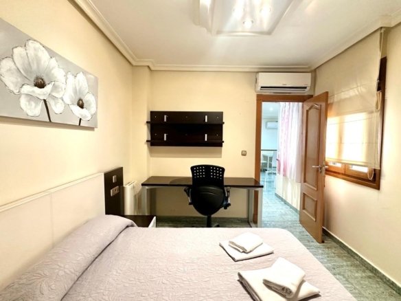 Special Double Penthouse Package for Sale – Exclusive Opportunity in the Heart of the City We are proud to present this magnificent double penthouse package with a total area of 189 m², a unique opportunity for those seeking spaciousness, versatility and a privileged location. This property combines two independent penthouses —Part A and Part B— perfectly designed, offering the ideal balance between comfort, style and functionality. Part A: Warm and functional family space The first penthouse stands out for its cosy atmosphere and practical layout, ideal for families or those who want to enjoy a home with Mediterranean charm. It features: Three spacious bedrooms, all with excellent natural lighting. A comfortable and well-distributed living-dining room, perfect for moments of relaxation or family gatherings. A cosy kitchen, separated from the living room by a decorative wooden curtain, which adds warmth and an elegant rustic touch. A fully equipped bathroom with a shower tray and all the necessary details for everyday comfort. A master bedroom with direct access to the east-facing terrace, ideal for enjoying the morning sun and gentle sunsets. This space conveys a feeling of home, with a bright and relaxing atmosphere that invites you to enjoy every corner. Part B: Modern design, elegance and spaciousness The second penthouse, with a contemporary and sophisticated style, has been designed with the comfort and functionality of modern life in mind. It features: A spacious, modern living-dining room with direct access to the terrace and large windows that flood the space with natural light. A fully equipped separate kitchen with high-quality appliances and a contemporary design. A wraparound terrace, accessible from different rooms, which runs along Calle San Julián and Calle La Paz, offering open views and plenty of light throughout the day. Master bedroom with dressing room and en-suite bathroom, equipped with a shower tray and top-quality finishes. All rooms have air conditioning, ensuring maximum comfort at any time of year. This penthouse combines modernity, spaciousness and elegance, ideal for those looking for a representative and functional space. A unique concept: double penthouse, double opportunity What makes this property special is the possibility of enjoying two homes in a single purchase: live in one and rent out the other, keep them as a single large residence or use them for family and guests. Its design and layout allow for multiple options of use, adapting perfectly to different lifestyles. With a total of 189 m², spacious terraces, excellent orientation and complete amenities, this double penthouse package represents a unique opportunity in today’s property market. Privileged location Located in a quiet but central area, this double penthouse is close to all essential services: supermarkets, schools, restaurants, pharmacies and leisure areas. Its location allows you to enjoy urban convenience without sacrificing the privacy and tranquillity of an exclusive home. In summary Double penthouse with 189 m² of floor space Five bedrooms in total Three full bathrooms (two with shower trays) Two fully equipped kitchens Spacious and bright east-facing terraces Air conditioning in all rooms Excellent location close to all amenities A unique property that combines space, elegance and functionality. Ideal for families, investors or those looking for a property with character and added value. Contact us today for more information or to arrange a private viewing. Translated with DeepL.com (free version)