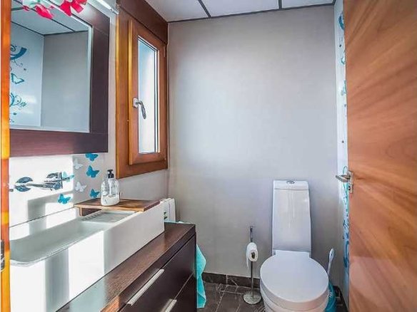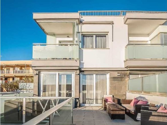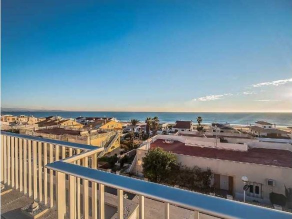 This lovely townhouse is situated in 100 metres from central Guardamar beach and has beautiful open sea views. 247 sq.m. of built area distributed between 3 levels – basement, ground floor and 1st floor. The kitchen, living rooms and guest toilet are located o the ground floor. Master bedroom with walk-in closet and a balcony, another single bedroom with built-in wardrobe and common bathroom are located on the 1st floor. 2 more bedrooms with common bathroom and second living room are in the basement level. Also in the basement there is a big patio, which brings in natural light to all the rooms. The access to the private underground garage with storage room is also located in the basement level. This townhouse also has a roof terrace with amazing panoramic views. It is a corner townhouse which is surrounded by a huge private terrace. There is communal swimming pool available in the residential. All furniture and white goods are included in the price (except for main lounge sofa and lamps). This property was built using top quality materials, hence is absolutely suitable for permanent living. High quality, double glazed thick windows ensure comfortable temperature in the house throughout the year without the need of using heating or air conditioning. Centralised air conditioning system is pre-installed in the house. Motorized shutters on windows, automatic garage door. Very convenient location, with all necessary amenities and services available in walking distance.