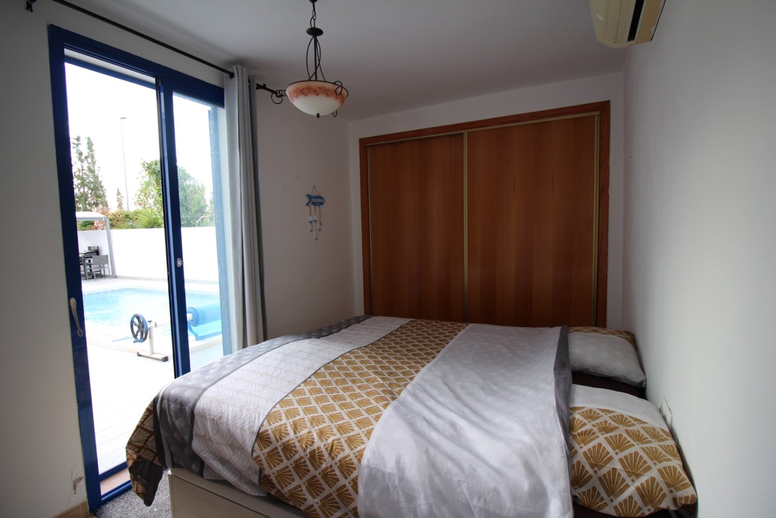 Beautiful modern style villa located in a very quiet residential area 1 km from the spa and 2 kms from the town of Fortuna with all amenities. It consists on the ground floor of a large living room, kitchen and dining room, 2 bedrooms with fitted wardrobes, bathroom and storage. Upstairs there are 2 additional bedrooms, each with terrace and a second bathroom. The outdoor areas are fully tiled for easy maintenance. This beautiful villa has all modern comforts and much more. It is connected to the drinking water network, the electricity network but also has a brand new photovoltaic system with lithium batteries (10KW). There is fiber optic for internet, a heat pump to heat the pool, solar screens on each facade, air conditioning units in all rooms, an extendable terrace cover, a swimming pool tarp (new) , surveillance cameras, It should also be noted that the pool was refurbished 2 months ago. There also is a community pool 200 m away At 25 minutes from the beautiful city of Murcia, 45 minutes from the airport and beaches.