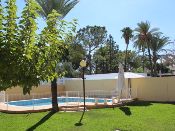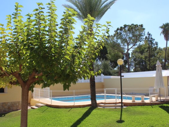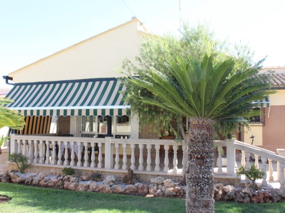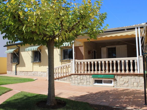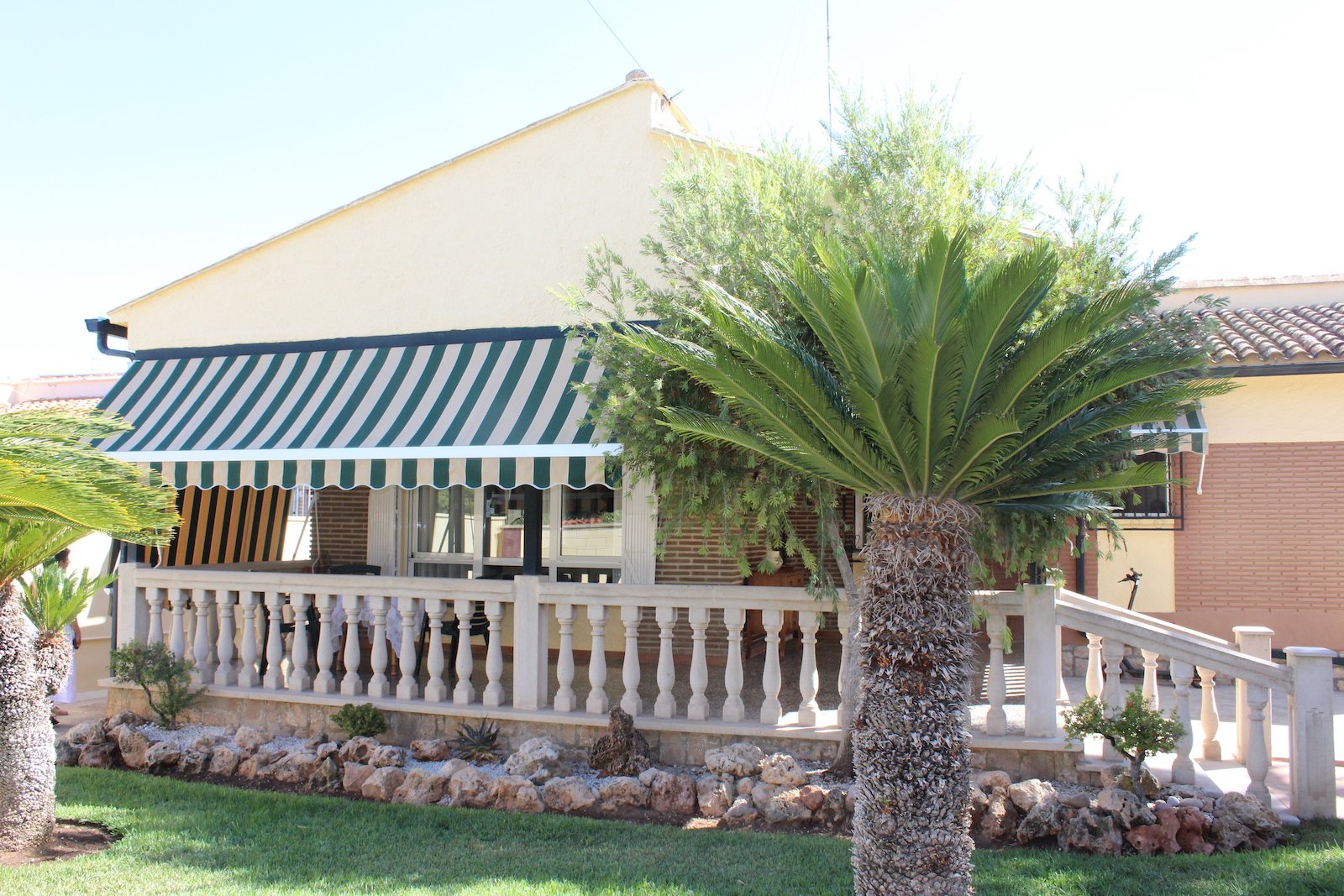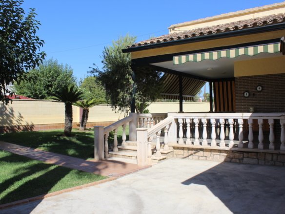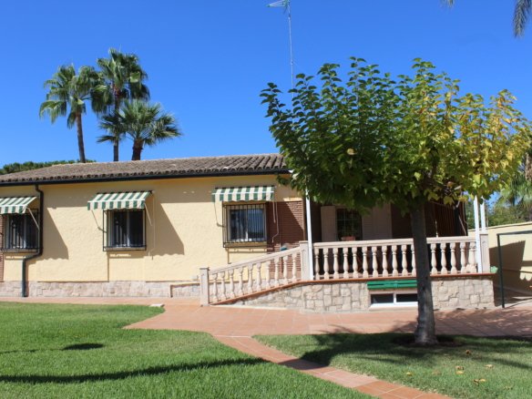 Charming Detached Villa in Montealegre, L’ElianaThis beautiful single-storey villa sits on a 790 m² plot with a well-maintained garden and private pool. Located in the sought-after Montealegre residential area, it offers excellent access to schools, metro (500 m), and the town centre of L’Eliana.The property has 200 m² built, distributed in 4 bedrooms, 2 bathrooms (one outside by the pool), a bright and spacious living-dining room, an independent kitchen, and two large terraces with different orientations. From the rear terrace, stairs lead down to a semi-basement with a multipurpose room.The plot features a natural lawn garden with palm trees, a pool with filter system and solar shower, a closed barbecue area with laundry and a full bathroom, plus parking space for 2 cars.Extras include air conditioning (hot/cold) in living room and 2 bedrooms, double-glazed PVC windows with shutters and mosquito nets, awnings, pre-installation for fireplace, osmosis system, and full accessibility for reduced mobility.Ideal for year-round living, with fast access to Valencia (20 km), the airport (10 minutes), and all services.