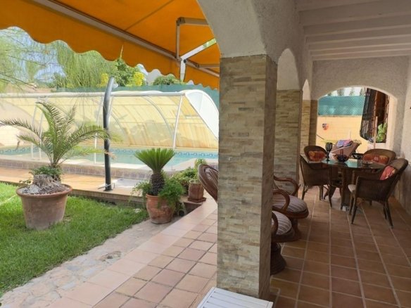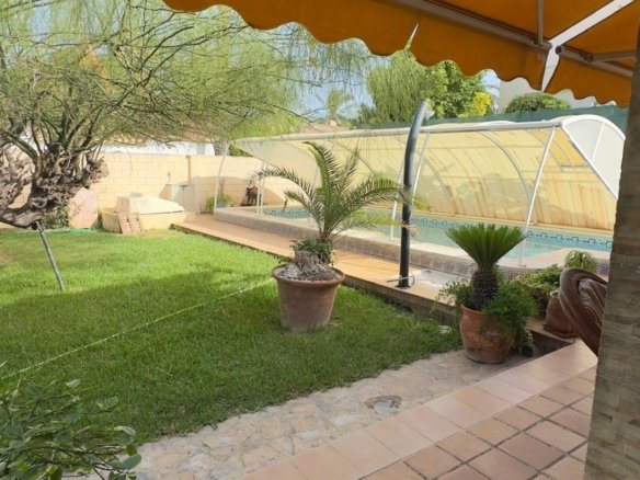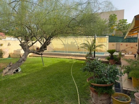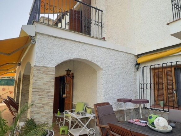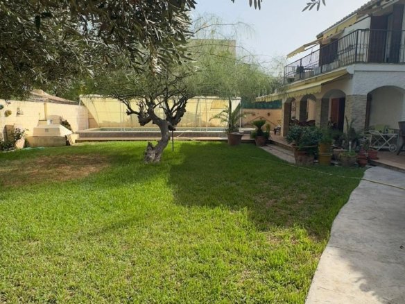 We present to you this magnificent fully detached home, located on a corner plot that ensures privacy and comfort. Ideal for those seeking quality of life, space, and a well-maintained natural environment. Moreover, it is located close to all amenities and just 700 m from Punta Prima beach! Upon entering the property, you are welcomed by a large 800 m² plot with a beautiful natural grass garden, perfectly maintained and featuring a stunning centuries-old olive tree. Enjoy the private saltwater pool, equipped with a winter cover, and relax in the outdoor jacuzzi. There is also a porch, chill-out area, and parking space for up to 3 vehicles. The house is distributed over two comfortable floors: Ground floor: Spacious and bright living-dining room with fireplace, perfect for a cozy winter atmosphere. Independent kitchen with pantry and direct access to the outside. This floor also includes two bedrooms and two additional rooms that can easily be adapted as bedrooms, an office, or a playroom. First floor: Two double bedrooms, both with access to a sunny terrace with open views. The spectacular master bedroom features a walk-in closet and en-suite bathroom. An additional full bathroom serves the floor. An ideal property both as a permanent residence or second home, ready to move into, surrounded by nature and equipped with all comforts to enjoy the outdoor space and tranquility to the fullest.