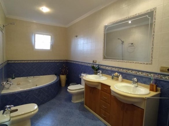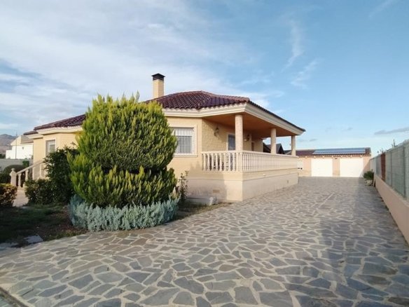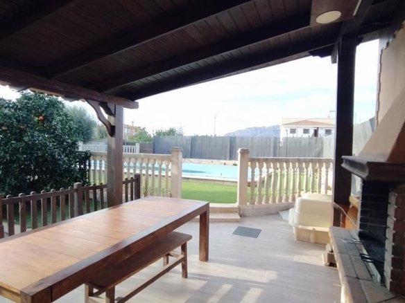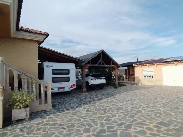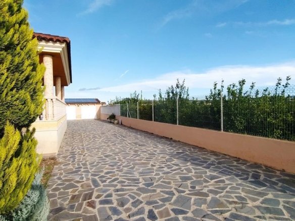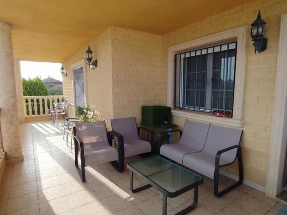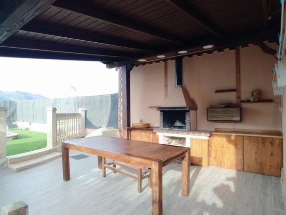This 240 m² villa features 4 bedrooms with built-in wardrobes, a living-dining room with a wood-burning fireplace, a very spacious independent kitchen with cherry wood cabinets, a utility room with a laundry area, a bathroom with a whirlpool tub, and another en-suite bathroom in the master bedroom. It also boasts 2 terraces, a private swimming pool, a chill-out area perfect for barbecues under solid wood gazebos, enjoying the fresh air of the surrounding orchards, a two-car garage with storage cabinets and a toilet, and a 1050 m² plot with a large area for children to play and have fun.Inside, the villa showcases high-quality finishes, with spacious rooms and abundant natural light. Features include marble and ceramic tile flooring, tilt-and-turn aluminum windows with double glazing, and interior woodwork crafted from Spanish oak. The villa has double-wall insulation (with sprayed polyurethane foam) for both acoustic and thermal insulation. The exterior is perfect for relaxing by the pool or strolling through the easy-to-maintain and irrigate garden, which features ornamental trees and various fruit trees. The villa is located near a residential neighborhood (50 meters), a restaurant (100 meters), and a supermarket (200 meters). It is 6 minutes from Orihuela city center and 30 minutes from the beaches.