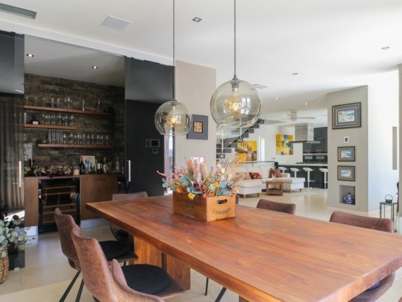 Modern villa with private pool, 2 floors and basement in excellent condition This exclusive detached villa, distributed over two floors plus a basement, sits on a plot of 518.80 m² and offers a total built area of 324.40 m², designed with a functional and elegant layout. The property is in excellent condition, featuring high-quality finishes and a design created to enjoy both indoor and outdoor living. On the ground floor, you will find a spacious and bright living room with an open-plan kitchen, study and library area, guest toilet, laundry room, and dining room. In addition, there is a cosy lounge with a bar, ideal for entertaining and social gatherings. The first floor consists of a single bedroom, perfect for a child, and a double bedroom with en-suite bathroom. Both rooms enjoy direct access to a large terrace with views of the front of the house and the pool. One of the highlights of this property is its exclusive rooftop solarium, an exceptional private space ideal for sunbathing, creating a chill-out area, or simply relaxing while enjoying the views. The basement is designed as an entertainment space, featuring a large lounge ideal for a home cinema, a darts area, two double bedrooms, and a full bathroom. This level also includes a spacious garage with capacity for two cars, two storage rooms, and an exterior bathroom designed to serve the pool area. Outside the garage, there is additional uncovered space for another car. Outdoors, the property boasts a private swimming pool measuring 8×4 metres (32 m²), surrounded by plenty of space to enjoy the Mediterranean climate. This villa perfectly combines comfort, style, and functionality, making it ideal both as a permanent residence and a holiday home. Its smart distribution, entertainment areas, and excellent condition make it a unique opportunity.