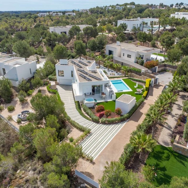 Modern villa with private pool, 2 floors and basement in excellent condition This exclusive detached villa, distributed over two floors plus a basement, sits on a plot of 518.80 m² and offers a total built area of 324.40 m², designed with a functional and elegant layout. The property is in excellent condition, featuring high-quality finishes and a design created to enjoy both indoor and outdoor living. On the ground floor, you will find a spacious and bright living room with an open-plan kitchen, study and library area, guest toilet, laundry room, and dining room. In addition, there is a cosy lounge with a bar, ideal for entertaining and social gatherings. The first floor consists of a single bedroom, perfect for a child, and a double bedroom with en-suite bathroom. Both rooms enjoy direct access to a large terrace with views of the front of the house and the pool. One of the highlights of this property is its exclusive rooftop solarium, an exceptional private space ideal for sunbathing, creating a chill-out area, or simply relaxing while enjoying the views. The basement is designed as an entertainment space, featuring a large lounge ideal for a home cinema, a darts area, two double bedrooms, and a full bathroom. This level also includes a spacious garage with capacity for two cars, two storage rooms, and an exterior bathroom designed to serve the pool area. Outside the garage, there is additional uncovered space for another car. Outdoors, the property boasts a private swimming pool measuring 8×4 metres (32 m²), surrounded by plenty of space to enjoy the Mediterranean climate. This villa perfectly combines comfort, style, and functionality, making it ideal both as a permanent residence and a holiday home. Its smart distribution, entertainment areas, and excellent condition make it a unique opportunity.
