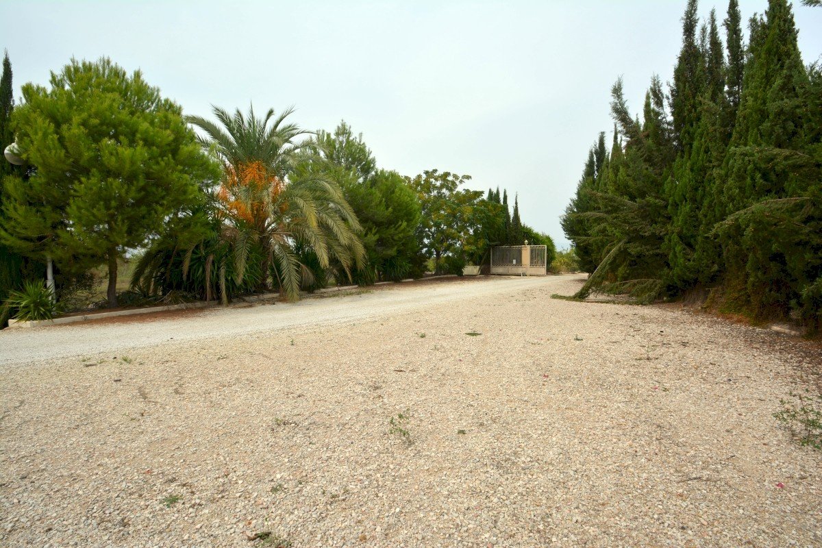 Nestled in the serene countryside of Almoradí, Alicante, this extraordinary property offers a unique blend of modern comfort and traditional charm on an expansive plot of 17,039 m². Almoradí, a charming town in the heart of Costa Blanca South, is renowned for its vibrant markets, warm Mediterranean climate, and proximity to pristine beaches and lush landscapes. This sought-after region provides an idyllic setting for those seeking tranquility while being conveniently connected to nearby amenities and attractions. The property comprises two separate homes, each with independent access, ensuring privacy and versatility for its owners. The primary residence, a detached villa built in 2005, boasts 267 m² of meticulously designed living space, all on one level. This home features four spacious bedrooms, including a master suite with a large walk-in closet, an elegant office, and a bright, expansive living and dining area complete with a cozy fireplace. French doors lead from the living space to a delightful porch overlooking the landscaped garden and inviting swimming pool. The villa also includes two full bathrooms, a guest toilet, a generously sized kitchen with a dining area, a large laundry room, and a welcoming entrance hall. Modern comforts such as heating and air conditioning ensure year-round comfort. Adding to its appeal, the property includes a double closed garage and a fully equipped summer kitchen, perfect for entertaining. The second home, while older in construction, is fully habitable and offers a warm, traditional ambiance. It consists of three bedrooms, a bathroom, a kitchen, and a comfortable living room, providing an excellent option for extended family, guests, or even rental potential. Both homes benefit from independent water and electricity meters, ensuring ease of management. Surrounded by lush gardens, this property invites you to enjoy outdoor living at its finest. The beautifully maintained grounds feature a sparkling swimming pool and charming summer kitchen, creating a private oasis for relaxation and gatherings. Taxes and additional purchase costs are not included in the price. For further information or to arrange a viewing, please do not hesitate to contact us. This exceptional property promises a lifestyle of comfort and charm in the heart of Costa Blanca South.