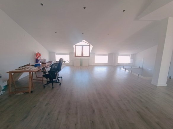 This exceptionally spacious townhouse in Roldán offers modern living finished to a very high standard, with extensive accommodation and enormous versatility. With over 300 m² of built living space, the property is arranged over three levels and includes a very large garage, a first-floor main living area, and a second upper living level, all connected by an elegant stairwell and a pre-installed lift shaft (a lift can be added if desired).The property is located on a quiet residential street in the traditional Spanish village of Roldán, offering peace, privacy, and easy access to local amenities.The house is entered through the front door into an impressive stairwell with marble flooring and a marble staircase leading to the upper floors. To the right, there is a substantial garage measuring approximately 125 m², providing ample space for multiple vehicles, bicycles, storage, or potential conversion, subject to requirements.The stairwell leads to the first floor, which forms the main living area of the home. Here you will find a large, fully fitted kitchen with extensive pantry storage, Silestone worktops, ceramic hob, oven, extractor fan, fridge-freezer, washing machine, dishwasher, and dining table with chairs. The kitchen opens directly onto a south-facing terrace, perfect for enjoying sunshine throughout the day.Also on this level is a spacious and comfortable living room, furnished with leather sofas, parquet flooring, and generous storage units. This is a relaxing and welcoming space, ideal for family living, and it leads onto a further terrace where you can enjoy fresh air and outdoor relaxation.The first floor also offers two double bedrooms. The main bedroom features an en-suite bathroom with bathtub, vanity unit, WC, and window, as well as a walk-in wardrobe providing excellent storage space. The second bedroom is also a double and comes complete with fitted wardrobes, a double bed, and bedside cabinets.A further stairwell leads to the upper level of the property. On this floor, there is a striking loft-style space with very high ceilings, feature windows, and doors leading onto another south-facing terrace. There is also an additional enclosed double bedroom with fitted wardrobes, drawer unit, and high-quality parquet flooring.The open loft area is currently used as a study but could easily be converted into a fourth bedroom, or even a fifth if required. This flexible space would be ideal as a studio, playroom, home office, or independent living area, especially as this level offers the potential for separate access and benefits from the existing lift shaft.Completing this floor is a large bathroom fitted with a walk-in shower, vanity unit, and WC, finished in light neutral tones and filled with natural light.This unique property has been built to specification and offers outstanding flexibility. It is ideal for a large family, multi-generational living, home-working professionals, or buyers seeking a property with space for a business, studio, or office.With its generous proportions, high-quality finishes, and huge potential, this townhouse is a rare opportunity to buy such a spacious property close to all amenities in the town of Roldan, just 20 minutes to the coast, 20 minutes to the city and 25 minutes to Murcia city.
