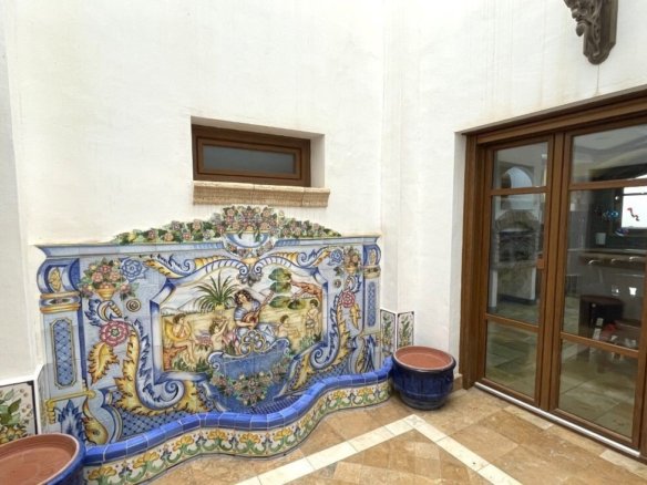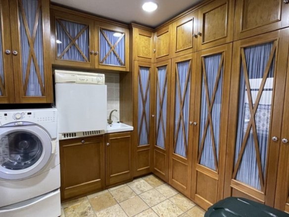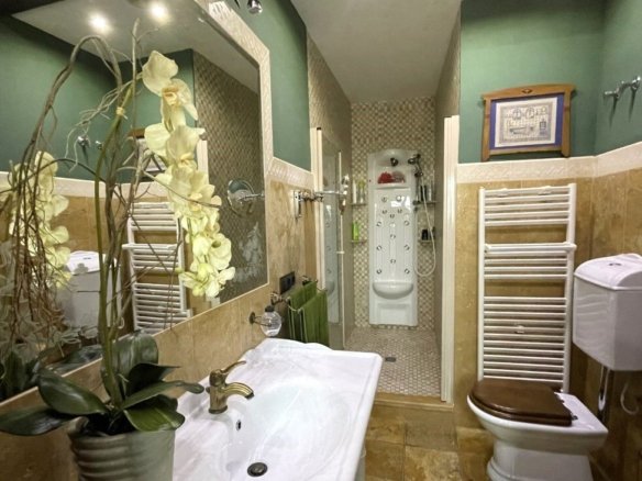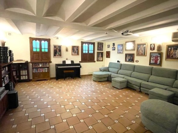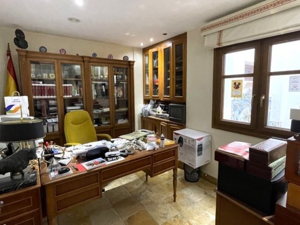 Fabulous, one of a kind townhouse with a build size of 542m 2 and located very close to the center of Torrevieja. This high quality property was designed & built by the current owners with all the features of the house being carefully chosen to best represent its incredible architecture. Entering the ground-floor hallway you are met with handcrafted, Italian, mosaic tiles and a marble staircase leading to the first-floor, and offering a grand living area with Venetian curtains, a beautiful fully-fitted kitchen, with utility-room, pantry and access to two large terraced areas providing plenty of natural sunlight to the spaces, an office and guest washroom. The second-floor presents the four bedrooms, including the large, master with private en-suite bathroom & walk-in wardrobe and a family-size bathroom. The top floor has a large, open-plan living area that the current owners have turned into a library/work space and access to the private solarium featuring a large storage room. The main entrance has access to a very large, private garage where you can park several vehicles, has room for storage & features a family-size bathroom. Also including an underbuild where you can find another large living area with specially designed windows that replicate natural sunlight and a temperature regulated wine cellar. The house itself has been elevated thus preventing damp & its structure is anti-seismic. All the doors are handcrafted, all the shutters are electric & the property also features marble floors with underground heating, air-conditioning, an alarm-system, all lights are LED, PVC windows, &….. a lift with access to every floor! Book a viewing with one of our agents & find your dream home today!