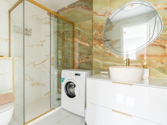 I present to you this semi-detached house with private pool and garage “Two in One” – it consists of two connected but independent houses, ideal for a large family. It is located in Punta Prima, Orihuela Costa, just 400 meters from the sea. Orihuela Costa stands out as a coastal destination with excellent weather and beautiful beaches. This semi-detached house has something special: 2 modern, furnished kitchens and 2 living rooms. It features 4 bedrooms and 3 bathrooms, all with large windows. The southeast orientation of both the bedrooms and the rest of the house allows natural light to fill every room. Additionally, it has a bright terrace with incredible views of the garden and pool. Outside, you’ll find a magnificent heated private pool with sun loungers, perfect for sunny summers, a barbecue area, and a parking space. The entire garden and terrace are equipped with night lighting, creating a magical atmosphere under the stars. Another highlight of this semi-detached house is its solar panels and fireplaces: one traditional and one electric. It’s perfect for a large family! Don’t miss this opportunity! Contact us to arrange a visit! We invite you to see it!
