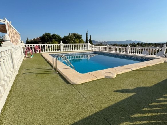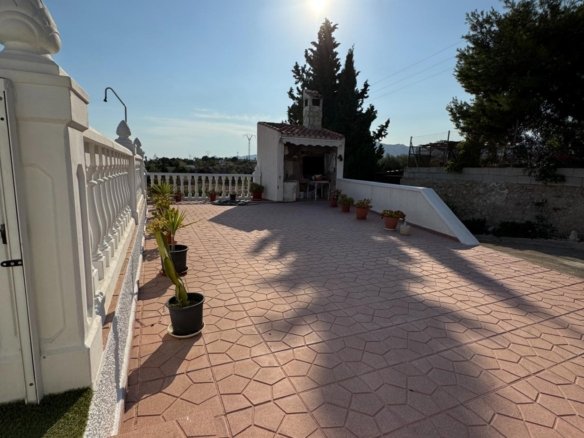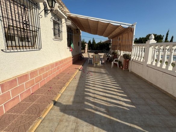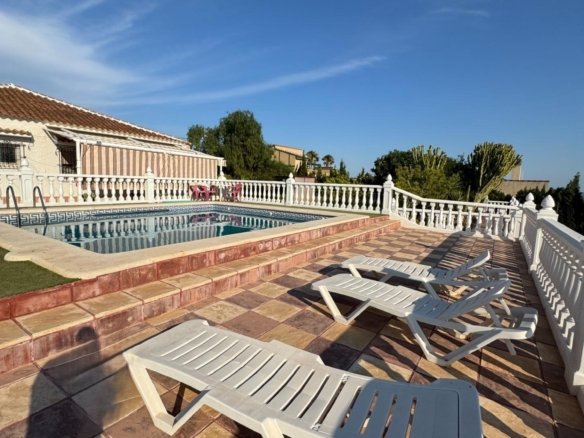 Detached Villa on Private Plot with Swimming Pool and Leisure Area. Detached single-family house for sale on a single floor, situated on an independent plot, with private swimming pool, garden area and various auxiliary constructions that make it an ideal property both as a permanent residence and as a holiday home. This cosy ground floor detached house offers a functional and comfortable layout for the whole family. Its rooms are designed to guarantee spaciousness, natural light and well-being in the day to day life. The property consists of: Covered terrace ideal for enjoying the outdoors, spacious living and dining room, fully functional independent kitchen, laundry room, 4 well distributed bedrooms, 2 complete bathrooms (one with access from the outside). The property is completely finished and is in a good state of conservation and habitability, ready to move into. The plot has a well-kept garden area and several outdoor spaces that make this property the perfect place to enjoy the good weather, family and friends. ♂️ Rectangular-shaped private swimming pool, located in the front garden, with a water surface area of 39 m². Ideal for cooling off and relaxing in summer. Covered barbecue, located in front of the pool. A perfect space for outdoor meals and social gatherings. Auxiliary construction under the pool, taking advantage of the natural slope of the land. This functional space is divided into: Technical room for the purifier Toilet with changing room Storage room Woodshed. All of this perfectly complements the main house, offering comfort, organisation and outdoor recreation areas. Location: Partida Las Lomas, Albatera Located in a quiet and consolidated residential area, just 6 km from the town centre of Albatera. Well communicated by road (quick access to A-7 and N-340), with easy connection to Crevillente, Elche and Alicante airport (30 minutes). Ideal for those looking for privacy, outdoor space and good accessibility.