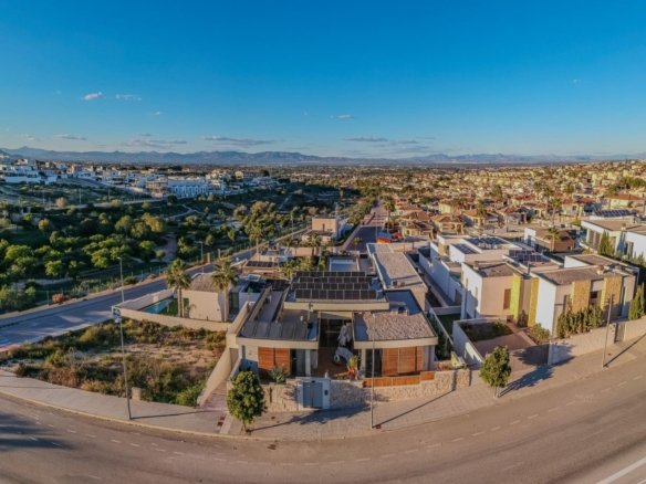 Exceptional Eco-Luxury Villa in Benijófar — A Masterpiece of Design, Wellness & SustainabilitySet in the desirable Residencial area of Benijófar, this remarkable villa stands as one of the most impressive eco-residences on the Costa Blanca. Designed and constructed with uncompromising attention to quality, comfort and efficiency, the property brings together world-class materials, advanced technology and elegant contemporary architecture to deliver a truly premium lifestyle experience. This is more than a luxury villa — it is an intelligently engineered sanctuary created for healthy living, wellbeing and absolute privacy. A True Eco-House Built to the Highest Standard Every element of this villa has been designed with sustainability and performance in mind: The property is fully powered by solar energy, dramatically reducing running costs while ensuring environmentally responsible living. A state-of-the-art filtration and purification system delivers clean, healthy air and water throughout the entire home — enhancing comfort and wellness. Premium-grade materials, insulation, and construction methods ensure long-term durability, noise reduction and exceptional energy efficiency. Climate-control systems provide optimal comfort year-round, making the home efficient, quiet and exceptionally pleasant to live in. This is a home built for the future — eco-friendly, low-maintenance, and engineered for outstanding performance. Generous Interiors, Separate Quarters & Versatile Professional Spaces The villa offers a spacious, flexible layout perfectly suited for luxury living, entertaining, and even running a business from home. Highlights include: Large, elegantly designed living areas with abundant natural light and premium finishes throughout. A fully independent guest apartment / separate quarters, ideal for visitors, extended family, staff, or private rental use. A dedicated business office, allowing you to work privately and professionally from home. A bespoke pedicure / podology room, perfect for running a small wellness service, personal use, or transforming into another treatment or beauty space. Multiple bedrooms and beautifully finished bathrooms offering comfort, privacy and refined style. Whether used as a luxury residence, a home-business combination, or a wellness retreat, the house adapts effortlessly. Unmatched Wellness & Resort-Style Amenities The villa has been designed to offer an unparalleled wellness experience: A heated private pool, ideal for year-round swimming and relaxation. Jacuzzis, whirlpool baths and spa-quality features throughout, including a steam-style shower environment for complete rejuvenation. Beautifully landscaped outdoor areas with sun terraces, shaded seating, and elegant spaces for entertaining and enjoying the Mediterranean climate. Everything is designed to elevate your daily lifestyle — comfort, relaxation, privacy and wellbeing all in perfect harmony. ✨ A Rare Opportunity in One of the Costa Blanca’s Most Desirable Areas This villa effortlessly blends sustainable design, elite construction, luxury amenities and versatile living spaces. Its combination of solar-powered efficiency, wellness features, independent guest quarters and business-ready rooms makes it a truly unique property — ideal for those seeking a residence that offers far more than a place to live. With its premium location, advanced eco-systems and exemplary craftsmanship, this home stands as one of the finest offerings currently available in Benijófar.