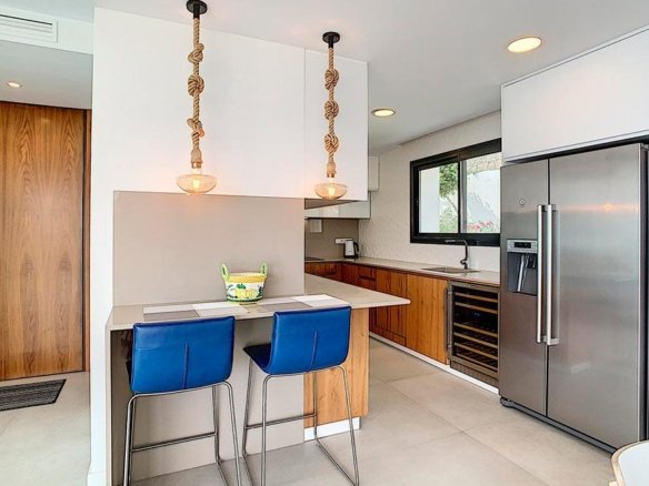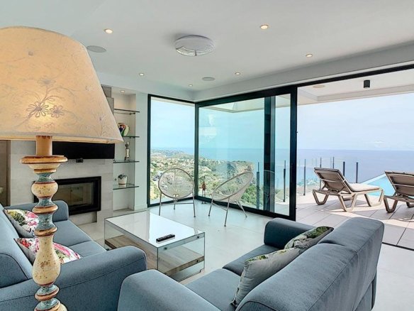Modern villa with spectacular sea views located in the exclusive residential area of Cumbre del Sol, very close to Moraira and Jávea. The area has all the necessary daily amenities, such as supermarkets, pharmacy, school, sports facilities, and restaurants. The nearby cities of Moraira and Jávea complement the offer of services, making this location an ideal place to live all year round or to spend on holidays.Villa, ready to move into, on a large plot of 912m2, and a construction size of more than 200m2. The villa is distributed on two floors, with 4 bedrooms (2 en-suite). The most remarkable thing about this property are the impressive sea views from most of the rooms and especially from the terrace and pool area.Among other qualities, the villa is sold fully furnished and has ducted hot/cold air conditioning, underfloor heating on both floors, two fireplaces, and a pergola covered parking area in the premises.