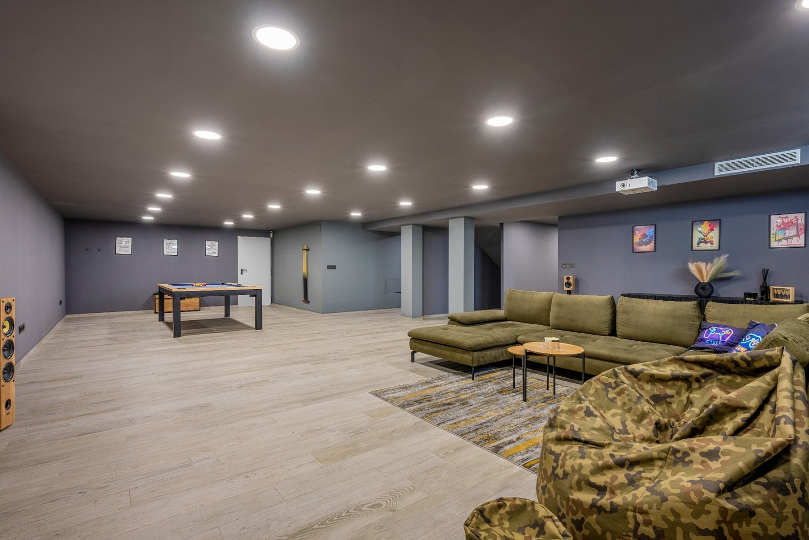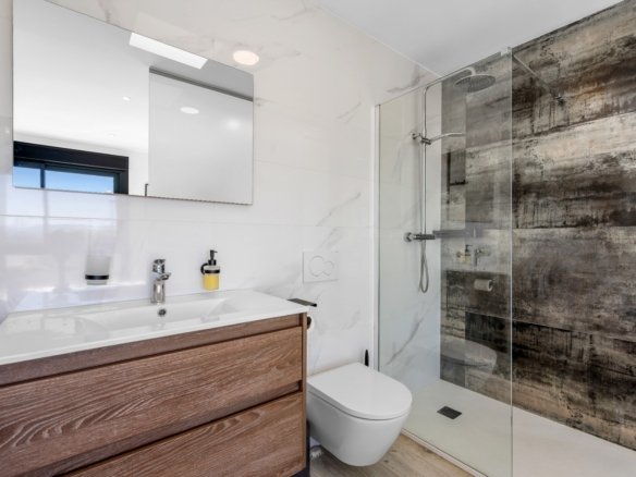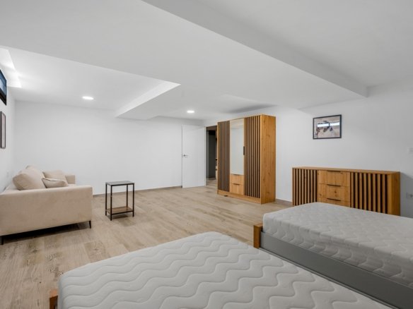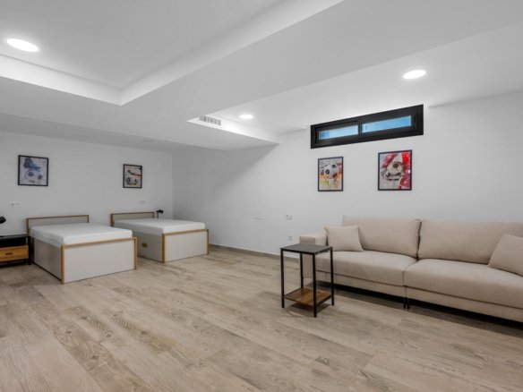 Discover this stunning modern 4-bedroom, 3.5-bathroom villa perfectly situated between Serena Golf and the shimmering coast of the Mar Menor. Combining style, comfort, and functionality, this fully furnished property offers the ideal balance between luxury living and coastal tranquility. With 192 sqm of usable space, the villa features a bright and airy open-plan living area that seamlessly connects to the outdoor terrace and pool. Its southeast orientation ensures natural light throughout the day, highlighting the elegant modern finishes and tasteful décor. The top-level solarium (83 sqm) provides a spectacular space for relaxation or entertaining, offering panoramic views of the golf course and the surrounding landscape. The huge basement is designed for leisure and convenience, boasting a cinema room, pool table area, and garage, along with an additional bedroom that comfortably accommodates up to four people — perfect for guests or family gatherings. Outside, enjoy a private swimming pool, dining area, and a green zone, ideal for soaking up the Mediterranean sun or enjoying peaceful evenings. Nestled in a quiet area with beautiful views, this villa offers privacy while being just minutes from golf, beaches, restaurants, and all local amenities. Key Features: 4 Bedrooms, 3.5 Bathrooms 192 sqm built + 83 sqm rooftop solarium Fully furnished, move-in ready Private pool and landscaped outdoor area Spacious basement with cinema, pool table, and garage Southeast orientation for optimal sunlight Peaceful location between Serena Golf & Mar Menor This villa is the perfect home for those seeking a modern Mediterranean lifestyle with a touch of luxury and relaxation.