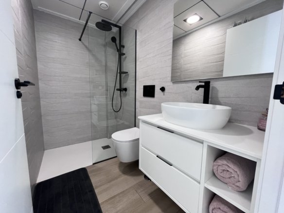 Experience modern coastal living at its finest in this exceptional resale new-build villa, perfectly positioned in the heart of Punta Prima. This home offers the ultimate blend of style, comfort, and convenience—just a short walk from the beach, restaurants, shops, and all local amenities.This high-spec, fully furnished residence spans multiple levels and has been designed with contemporary elegance and functionality in mind. The property features four bedrooms, with one conveniently located on the ground floor and three on the first floor, along with a fully finished basement offering an additional bedroom and bathroom—ideal for guests or extended family. Air conditioning is installed throughout with a ducted system to ensure year-round comfort, while the upgraded electrical panel and state-of-the-art security system provide safety and peace of mind.Every detail has been considered for modern living. A comprehensive water filtration system delivers clean, high-quality water throughout the home, while the solar swimming pool cover improves energy efficiency and helps maintain optimal pool temperatures. An automatic self-closing awning offers convenient shade and protection during sunny days.The rooftop terrace has been thoughtfully upgraded to create a private sanctuary, featuring premium artificial grass and a custom putting green—the perfect spot for relaxing, entertaining, or simply enjoying the coastal views.Set in a central and highly sought-after location, this villa allows you to embrace the best of coastal living with everything just steps away. Combining modern architecture, smart technology, and luxurious finishes, this move-in-ready home is ideal as a permanent residence, a holiday retreat, or a high-end investment opportunity in one of the Costa Blanca’s most desirable areas.