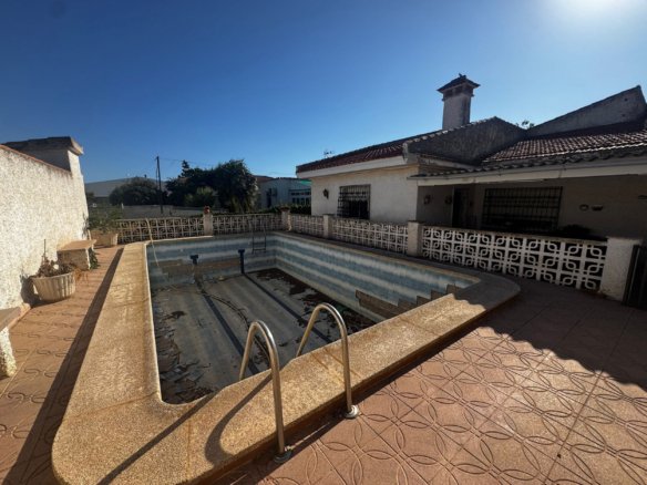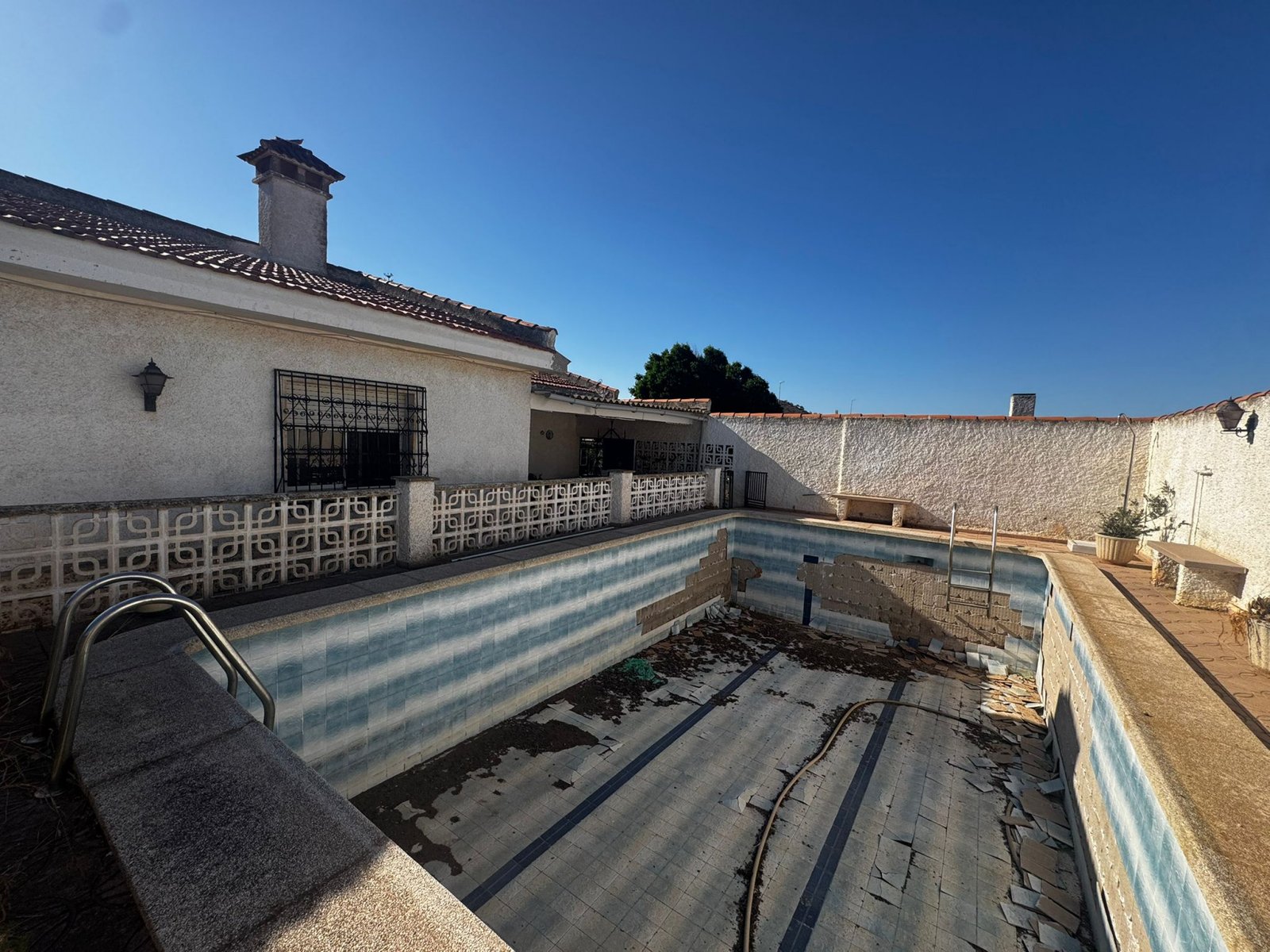 Finca Villa for Sale in Roche, Cartagena (Murcia) Opportunity to acquire a traditional finca-style villa in the sought-after area of Roche, just 5 minutes drive from Cartagena city. This spacious property, set on a generous 1,512m² plot, offers great potential for renovation and customisation to your taste. The villa has a total build size of 128m², with a welcoming carport at the entrance, a mature garden with orange trees, and outdoor areas enjoying both sun and shade throughout the day. Inside, the property offers: * 5 bedrooms (two with fitted wardrobes) * 2 bathrooms (one with bathtub, one with shower) * Attic room plus a storage room * Bright living area with fireplace * Kitchen with utility area and direct access to a covered terrace overlooking the pool The exterior boasts a private swimming pool (5x10m) with outdoor shower, an annex with living area, kitchen, and air conditioning, plus additional covered terrace space. There is also the possibility to create a wine cellar beneath the pool area. Additional features include: * Workshop at the rear of the property * 26m deep well on the plot * Pool pump house with storage This finca presents a wonderful opportunity for those seeking a renovation project with character, close to the city yet enjoying the peace and charm of the countryside. Price shown excludes buying costs Cash buyer: add 10% Mortgage buyer: add 12%