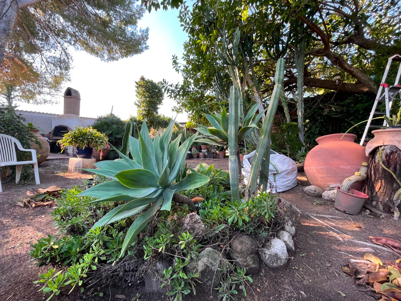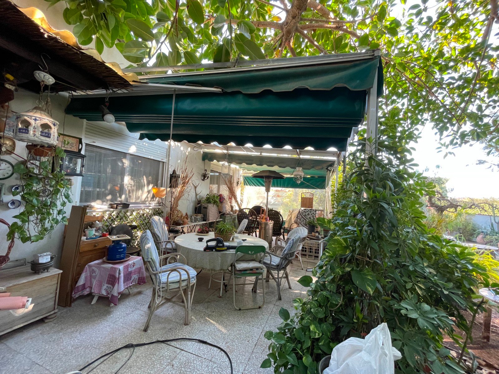 It is an independent house with 1250 m2 of land full of gardens, several mature trees, a stone barbecue and a small lake with water lilies.The house has 5 bedrooms and 2 bathrooms.Mosquito nets on the windows, gas stove, electric heating, centralized a/c. The house has good water pressure.It has a semi open garage, semi covered terrace, a small shed. There are two driveways – one manual, one automatic. Video intercom.Baker passes through the door every day!