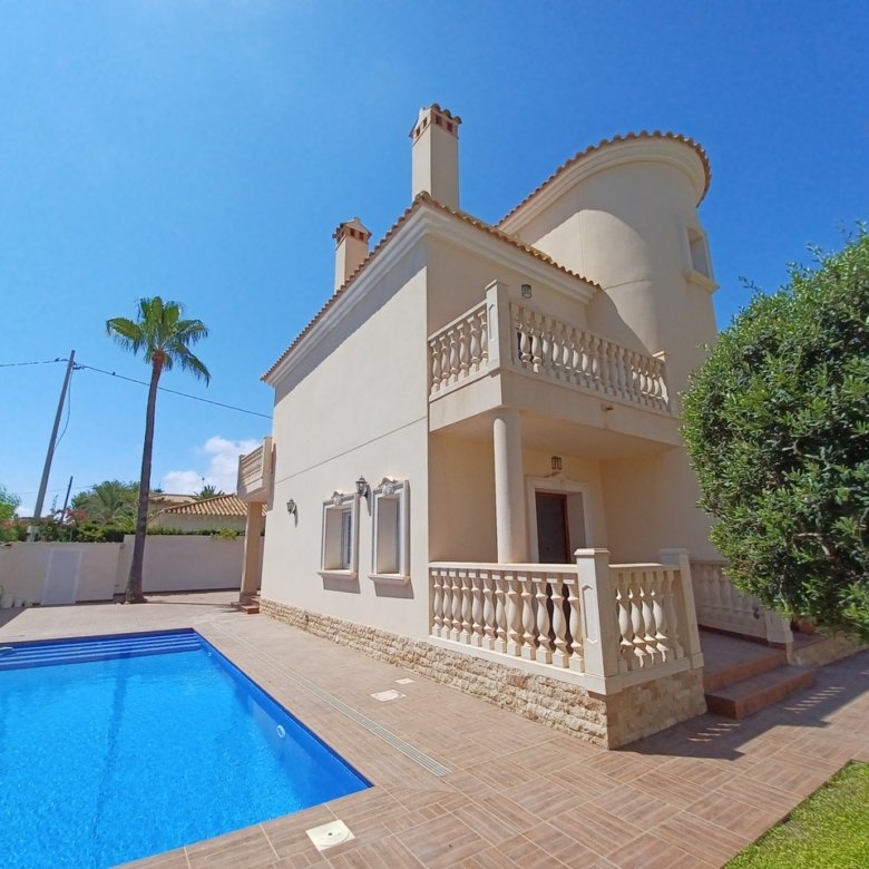 We present this villa located in Villamartin. When we enter into this property we can find a huge living room with fireplace. This living room is connected to the dinning room. And from there we go to a open kitchen with laundry room. There is a long corridor where we find four of the bedrooms with wardrobes, and two bathrooms whichs one of them has bathtub.Upstairs we find the fifth bedroom and a big solarium with sea views.This property is perfectly located as it has many bars, shops and supermarkets walking distance. And also has Campoamor and Ramblas Golf courses only 10 minutes walking.