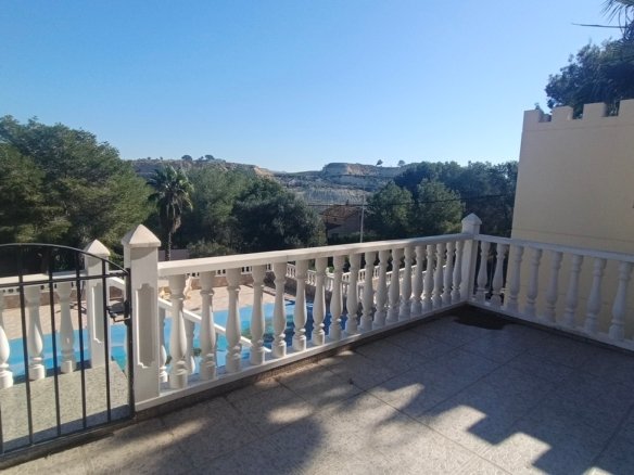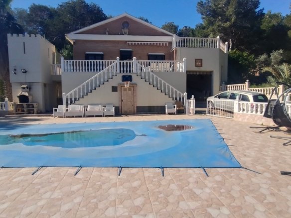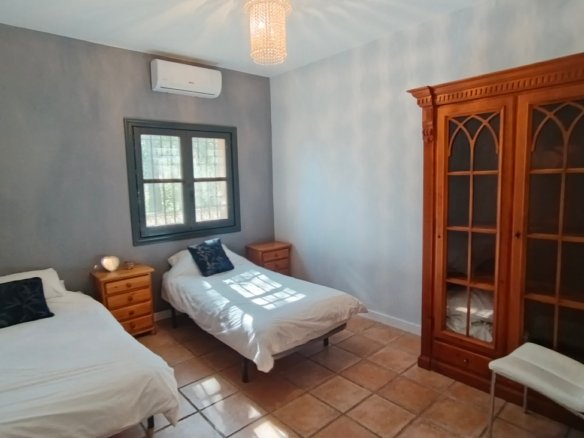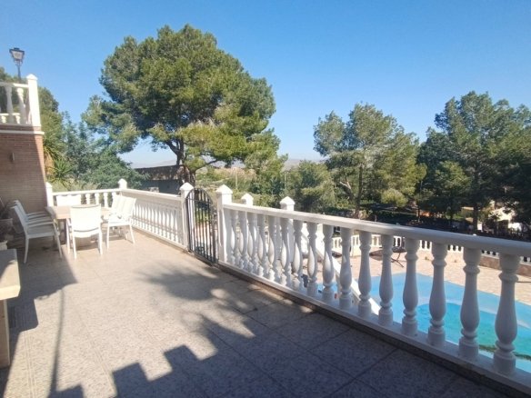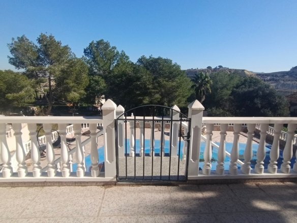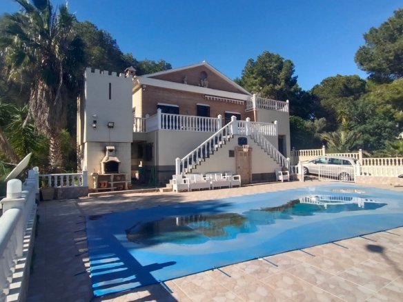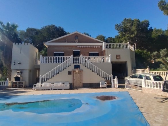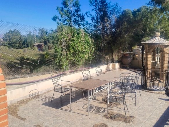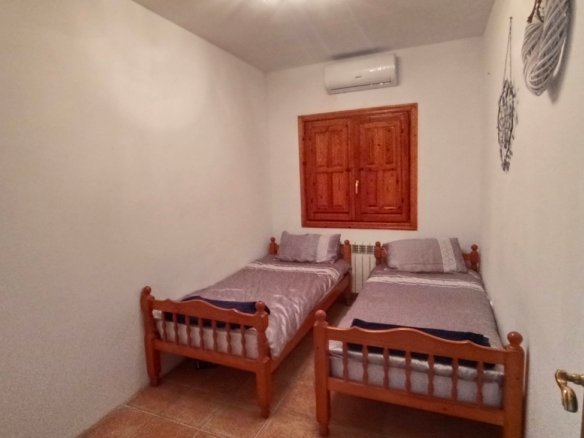 Stunning unique Country Villa with Mountain Views, Guest Apartment & 2200m² Corner PlotThis unique country villa offers breathtaking mountain views, exceptional privacy, and generous living space, all within easy reach of amenities. Ideally located just 10 minutes to Sucina village,  20 minutes from the coast, 20 minutes from Murcia city, and 20 minutes from the airport, it combines peaceful rural living with excellent accessibility.Situated on a large 1,500m² corner plot, the property benefits from two separate gated entrances — one to the front and one to the side — providing ample parking, including an underbuild garage and a separate independent garage.Access to the main living area is via stairs leading to a spacious front terrace, which opens into a beautifully modernised open-plan living room and kitchen. Finished to a high standard, the contemporary fitted kitchen features a central island and high-quality appliances. The bright living area includes a wood-burning stove and enjoys direct views over the pool and surrounding mountains.A hallway leads to the sleeping accommodation:The first bedroom is a small double with charming original wooden windows and traditional shutters.The second bedroom is a spacious double with twin beds, fitted wardrobes, air conditioning, and wooden shutters.The master bedroom is an impressive, generously sized double with air conditioning, bedside cabinetry, and an entire wall of wardrobe space.The main bathroom is finished with traditional mosaic tiling and includes a shower, WC, and vanity unit. A second large bathroom, located off the hallway near the garage access, also offers a built-in shower, WC, and vanity unit.From this area, a doorway leads to a high-quality built-in ramp, ideal for wheelchair or pram access, or for conveniently transporting heavier items between levels. The ramp leads down to an extensive underbuild of approximately 150m² — almost mirroring the size of the main house.The underbuild includes a separate self-contained apartment with its own private entrance, comprising:A large double bedroomA smaller twin bedroomA bathroomThis additional accommodation makes the property ideal for guests, extended family, or rental potential.Externally, the villa truly shines. A substantial pool terrace sits directly in front of the home, perfectly positioned so that the main living areas and terrace overlook the pool, gardens, and spectacular panoramic mountain views.There are multiple outdoor entertaining areas, including a built-in barbecue space with traditional pizza and roasting ovens, storage cupboards, and generous terrace areas. The plot wraps around the house, offering privacy from neighbours and plenty of usable outdoor space.Constructed to a high standard with an attractive façade and quality finishes throughout, this impressive country villa is offered fully furnished as seen and is highly recommended for viewing.