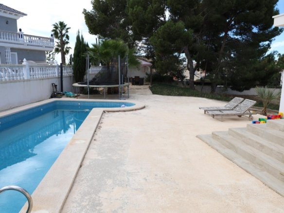 Chalet with pool and 5 bedrooms in Ciudad Quesada (Rojales) Spacious and bright chalet, whose major renovation began in 2020 and was completed in 2024 (Final de obra document available). Located in the prestigious Ciudad Quesada urbanization in Rojales. The property sits on a large plot of approx. 1,100 m² (800 m² recorded in title). Main level: – 5 bedrooms, including the spacious master with walk-in closet and en‑suite bathroom; – 3 bathrooms and 1 guest toilet; – Bright living room with fireplace; – Fully equipped open-plan kitchen. Semi-basement level: – Large room, storage, guest toilet and kitchen hookups — ideal for guest apartments with separate entrance; – Currently used as a massage and hair salon with independent access. Outdoor area: – Private pool, terrace area needs updating; – Rooftop solarium; – Plot offers space for garden, relaxation area and car shelter; – Gate access and possibility to park right next to the house. The house is in excellent condition and offers many possibilities to adapt the space. Location: – Just 6 km from the beach; – Quiet green area with local amenities: shops, cafés, park and lagoon nearby. KEY ADVANTAGES: – Renovation completed in 2024 – Spacious bright home with 5 bedrooms – Master bedroom with closet and en-suite bathroom – Potential for separate guest apartments – Private pool and solarium – Parking next to house, possibility for carport – Quiet area with nature and urbanization – New air conditioning units in all rooms An excellent choice for family living, vacation or investment — combining space, quality and location. Contact us for more information or to book a viewing — multilingual service available.
