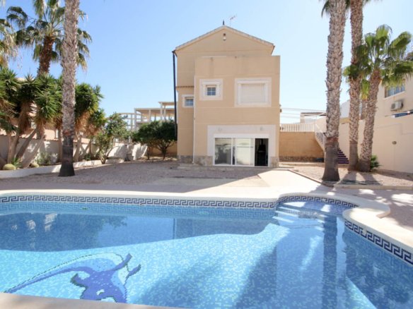 A very large detached villa situated in the popular location of La Zenia, close to all local facilities and amenities and within a short stroll of La Zenia beach and Boulevard.The property is approached by electric gates leading to the driveway. There are 5 bedrooms and 3 bathrooms. Downstairs the area is open plan which is very large and has large patio doors opening to the terrace and private pool. This is a really spectacular property offering huge accommodation situated on a plot of approximately 700M2.