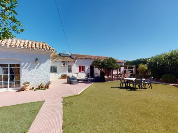 Beautiful villa on a large plot of 1,200m2 and situated on the outskirts of the Calblanque Regional Park. The property provides a build size of 200m2 & is made up of 2 houses in one. Offering a total of five bedrooms, of which 4 are double & bright & 3 full bathrooms, one of which is en-suite. The main house features three bedrooms & two bathrooms, a large living room with a fireplace and an office/study area. A hallway that leads to a large, fully-equipped kitchen with a dining-room and access to the rear terrace & multi-sports court. The guest house features 1 small bedroom, a large, open-plan living-dining-room with a fully equipped kitchen, one bathroom & 1 master bedroom with direct access to the garden. The large garden provides an outdoor bathroom & consists of different entertaining spaces around the villa including a shaded, dining area, grassed lawns, a majestic swimming pool, and offering incredible views of the surrounding scenes. Do not hesitate, contact us today & visit this amazing villa! We speak your language!