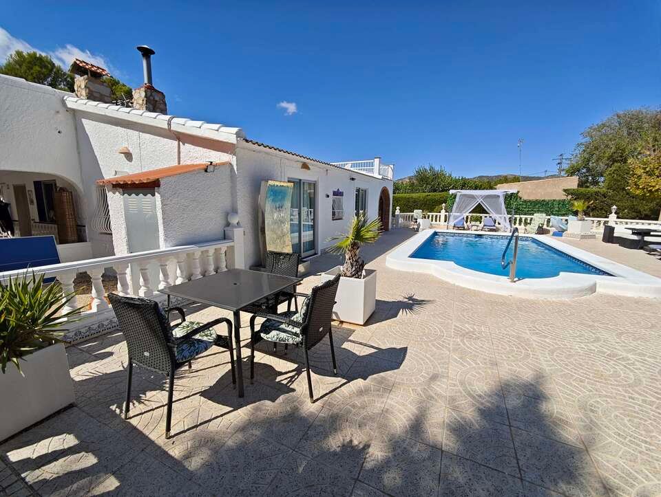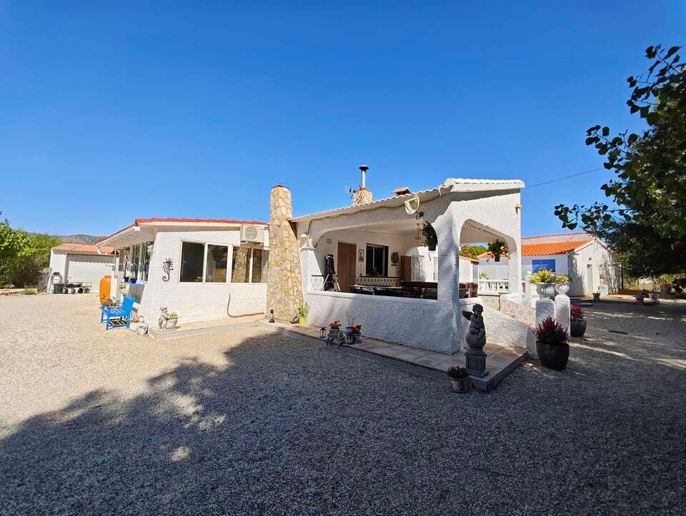 Charming country estate with an independent casitaOverview Nestled on a generous 3,156 m² plot with mature shade trees and productive fruit trees, this distinctive property comprises a spacious main villa (built area 302 m²) with three double bedrooms and two bathrooms plus a fully independent 2-bedroom, 1-bath casita. Combining rustic Spanish charisma with modern conveniences and energy-smart systems, the estate offers privacy, flexibility and genuine year-round comfort. Superb mountain views and a private heated 8 x 4 m pool complete the picture — a countryside retreat that’s well-connected to local towns and rail links.The main villaLayout & living spaces: The main house offers bright, generously proportioned living spaces with high ceilings and abundant natural light. A welcoming entrance leads to a large sitting/dining area ideal for both relaxed family life and entertaining. Character features include traditional tiles and exposed beams alongside contemporary finishes. Kitchen & dining: A well-equipped kitchen boasts a gas hob and a professional-style range cooker for serious cooks and Sunday roasts alike. Adjacent summer kitchen and covered outdoor dining area make alfresco meals effortless — imagine paella evenings beneath the trees. Bedrooms & bathrooms: Three true double bedrooms provide comfortable accommodation, served by two thoughtfully appointed bathrooms. Practical built-in storage and flexible room layouts make the space adaptable for families, home offices or hobby rooms. Heating & utilities: Wood-burning stove (log burner) and a pellet burner provide efficient, cosy heating for winter months. The property benefits from mains water plus agricultural water rights, and a pump house and separate boiler casita simplify maintenance and service access.The casitaIndependent living: The self-contained 2-bed, 1-bath casita is perfect for guests, long-stay visitors, rental income or extended family. It offers privacy while keeping you close, with its own utilities and direct access to outdoor terraces and the pool.Outdoor amenities & land usePool & leisure: A private 8 x 4 m heated pool allows for comfortable swimming outside peak summer months. Surrounding terrace space is ideal for sunbathing, socialising and outdoor dining. Roof terrace & views: A roof terrace provides panoramic mountain views — an excellent spot for morning coffee or sunset aperitifs. Grounds & planting: The estate benefits from established mature trees and various fruit trees, offering shade, privacy and seasonal produce. Large areas of flat, usable land are perfect for vegetable beds, a small orchard extension, or grazing. Recreation & fitness: Outside gym equipment, a darts board, a pool table, and a children’s play area support active family life and healthy living without leaving home. Outbuildings & practical spaces: A stable and a versatile workshop offer options for hobbyists, small-scale equestrian use, or storage. A double garage provides secure parking and additional storage. The pump house and boiler casita centralise essential systems for easy servicing.Energy & sustainabilitySolar system: A modern solar PV installation powers the property directly, significantly reducing reliance on the grid. A 5 kW battery storage system stores excess energy for use when the panels are not generating, ensuring consistent, efficient power day and night. When generation exceeds demand, surplus electricity is automatically exported back to the grid for additional savings. Dual heating: Log burner and pellet burner offer flexible, efficient heating that complements the mains/boiler systems.Location & accessibilityProximity to towns: Approximately a 15-minute walk to the attractive village of Salinas for local shops, cafés and community life; a short 5-minute drive brings you to the larger town of Sax with broader amenities, supermarkets and services. Transport links: Close to Sax train station for reliable rail connections to regional centres — an attractive feature for expat commuters or weekend explorers. Lifestyle: The property offers peaceful rural living without sacrificing convenience — ideal for buyers who want space, privacy and the ability to host friends and family or operate a small holiday rental from the casita.Practical detailsBuilt area: 302 m² Plot size: 3,156 m² Main villa: 3 double bedrooms, 2 bathrooms Casita: 2 bedrooms, 1 bathroom Pool: Private heated 8 x 4 m Parking: Double garage plus ample off-street parking Utilities: Mains water and agricultural water supply; solar PV exporting to gridWhy this property stands out This estate combines the best of Spanish rural charm — citrus-scented evenings, generous terraces and outdoor cooking — with pragmatic infrastructure that modern expat buyers value: independent living space, reliable utilities, good transport links and energy-conscious systems. Whether you’re seeking a permanent family home, a weekend escape, or an income-producing property with a rentable casita, this villa offers a flexible, characterful canvas.