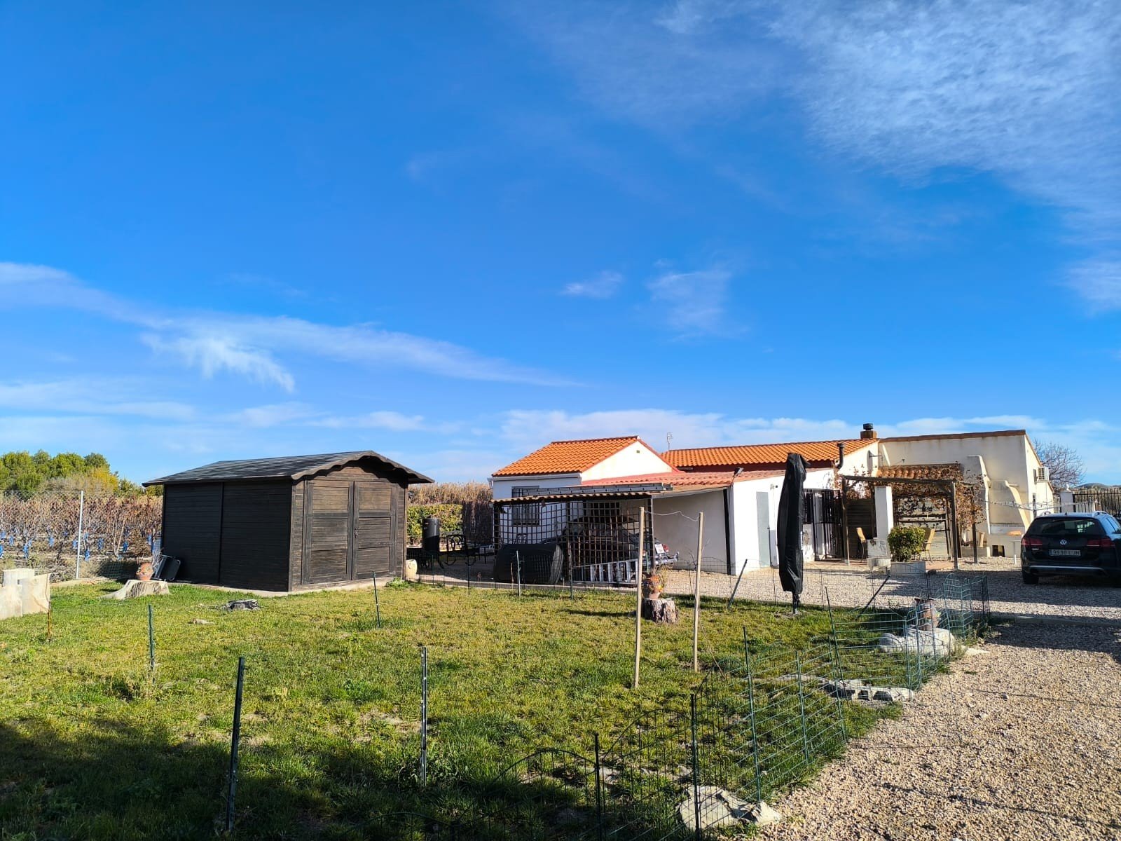 Spacious 5-Bedroom Villa with Guest Studio, Pool & Jacuzzi – Villena, AlicanteThis well-maintained villa near Villena offers generous indoor and outdoor living on an 8,000 m² fully fenced plot with beautiful gardens, fruit trees and an olive orchard. With 210 m² built, the property includes a 4-bedroom main house and a separate guest studio, making it ideal for families, guests or those seeking extra space for work or leisure.The main house is set on one level and features 4 bedrooms and 2 bathrooms, a large living room with fireplace, and a spacious office area with an additional small room—perfect for remote work, hobbies or storage. The home also includes a covered outdoor terrace fitted with fly screens, providing a comfortable seating and dining area to enjoy the views year-round. There is also a car port behind the house for 1 car.Outside, the property offers excellent facilities, including a 5×7 m swimming pool, a 6-person jacuzzi, several storage outbuildings, a tool shed and a wooden storage cabin surrounded by its own fenced garden with real grass and fruit trees. Behind the house is a detached guest studio with its own entrance, bedroom and ensuite bathroom—ideal for visitors or extended family.The land is fully irrigated automatically and divided into two sections: Front orchard with 35 mature olive trees Back garden area with apple, cherry, pear, fig and other fruit trees, plus a large pond The fencing and electrical installation have been recently updated, providing peace of mind and easy maintenance.About the area: The villa is located just a short drive from Villena, a historic inland town known for its medieval castle, vibrant cultural life and excellent local services. Villena offers supermarkets, shops, restaurants, schools, a high-speed train station and quick access to Alicante, which is less than an hour away. Surrounded by vineyards, mountains and open countryside, the area is perfect for enjoying nature while staying close to all daily amenities.A spacious, versatile country home in a peaceful setting with stunning mountain views — ideal as a family residence, a countryside retreat or a property with guest accommodation ready to use from day one. We have a large portfolio of properties in the Costa Blanca and Costa Calida areas, specialising in country properties, villas, fincas, building plots and design and build options in the Alicante and Murcia regions with a particular emphasis on Elda, Monovar, Pinoso, Sax, Villena, Aspe, Fortuna, Albacete and many more surrounding areas. We have been established since 2004 and have decades of experience between the team which we bring to bear to help you find and secure your new dream home. We help you every step of the way to make sure your purchase in Spain is safe and hassle free. We are not here to sell you a property, we are here to help you realise your dream and find what is right for you. With us you are in the safest hands. Contact us now to have a no obligation chat about how you too can realise your dreams.