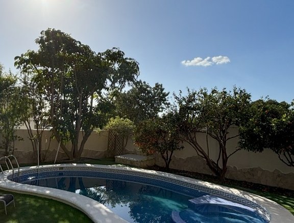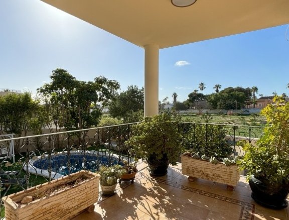 Independent Villa with Private Pool for Sale in Ciudad QuesadaLocated in the prestigious area of Ciudad Quesada, this stunning detached villa offers the perfect blend of comfort, space, and exceptional surroundings. Just a short distance from all essential services—including supermarkets, shops, banks, medical centers, pharmacies, and a wide range of bars and restaurants serving both local and international cuisine. The beautiful sandy beaches of Guardamar del Segura are only 8 km away.Set across three floors, the property features 5 spacious bedrooms and 4 full bathrooms, making it ideal for a large family or hosting guests in style.Layout:Upon arrival, you’re welcomed by a 30 m² front terrace, perfect for enjoying the Mediterranean climate. The spacious and bright living room is thoughtfully divided into a cozy fireplace corner, TV area, and dining zone. The separate kitchen is fully equipped with all necessary appliances and custom-made solid cherry wood cabinets, blending seamlessly into the warm interior. From the kitchen, there is direct access to a patio ideal for barbecues and outdoor dining.On the ground floor, there is also a fully renovated bathroom (2024).The first floor includes four bedrooms, one of which is currently used as an office. From the second bedroom, you can access a large 30 m² terrace with open views over green areas, a nearby park, and the salt lakes of Torrevieja. The master bedroom features a walk-in closet and a private en-suite bathroom with a shower. Another full bathroom on this floor includes a bathtub. The natural oak parquet flooring adds warmth and elegance throughout this level.In the semi-basement, you’ll find a private sauna and gym, perfect for wellness and relaxation. This level also includes a utility room, boiler room, an additional bedroom, and a bathroom—offering excellent guest accommodation or independent living space.Comfort & Features:Air conditioning and underfloor heating with liquid coolant, powered by a diesel system (also provides hot water)Security system with video surveillanceLocated on a quiet cul-de-sac, free from traffic noisePrivate swimming pool surrounded by a beautifully maintained garden with various fruit treesBarbecue area and direct access to the parkPrivate garage with space for two vehiclesSoutheast orientation, ensuring abundant natural light throughout the daySold fully furnished and equipped, ready to move inKey Facts:Built area: 360 m²Plot size: 850 m²5 bedrooms, 4 bathrooms3 floorsMultiple terraces and balconiesThis villa is a rare opportunity to enjoy luxury living on the Costa Blanca, offering space, privacy, and comfort in a prime location.