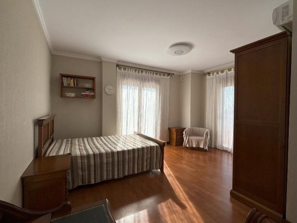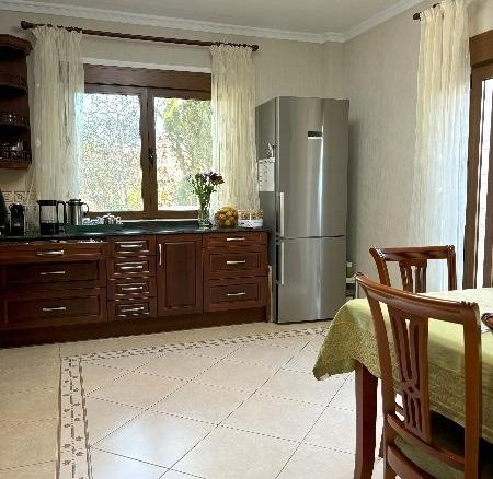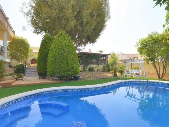 Magnificent and fully detached 3-story luxury villa on a large plot with its own swimming pool and surrounded by gardens in Ciudad Quesada. When you enter the house, you will find a porch with a large terrace (approximately 35 m2). The main floor consists of an entrance hall, a very spacious and bright sitting room with a fireplace, a living room, a dining room, a large independent kitchen equipped with all appliances and access to the barbecue area and the garden, and a bathroom. From there, a marble staircase leads to the upper floor. The upper floor consists of three double bedrooms, a study (which can be converted into a bedroom or other) and two bathrooms (one en-suite with a whirlpool bath to the master bedroom). From the bedrooms, you can access a large terrace with magnificent views of the park and surroundings. The villa also has a basement (access via an internal staircase) with a bedroom, a sauna with a relaxation room and steam shower, a bathroom, and a laundry room. From the basement, you can access the pool area. Contemporary and very elegant style. Large windows. Air conditioning. Fuel-fired heating system that also provides hot water. Built-in wardrobes in the bedrooms. Solid wood kitchen furniture with granite countertops. Stoneware floor and oak parquet. Video surveillance security system. Very High-quality materials. Lots of natural light. All surrounded by a beautiful garden with fruit trees, Mediterranean plants, a small pond with a waterfall, very charming! With a swimming pool and jacuzzi, a large semi-open porch for a barbecue area, a Summer kitchen, a pergola, a parking area for vehicles and a storage room. This splendid villa has been carefully designed for maximum comfort, relaxation and privacy. Excellent location, peaceful surroundings, close to all amenities, restaurants, supermarkets, banks, medical centers, schools, Aquapark, La Marquesa Golf Course, and so on., about a 10- to 15-minute drive from the magnificent beaches of Guardamar.