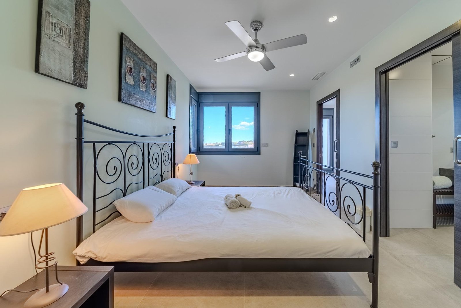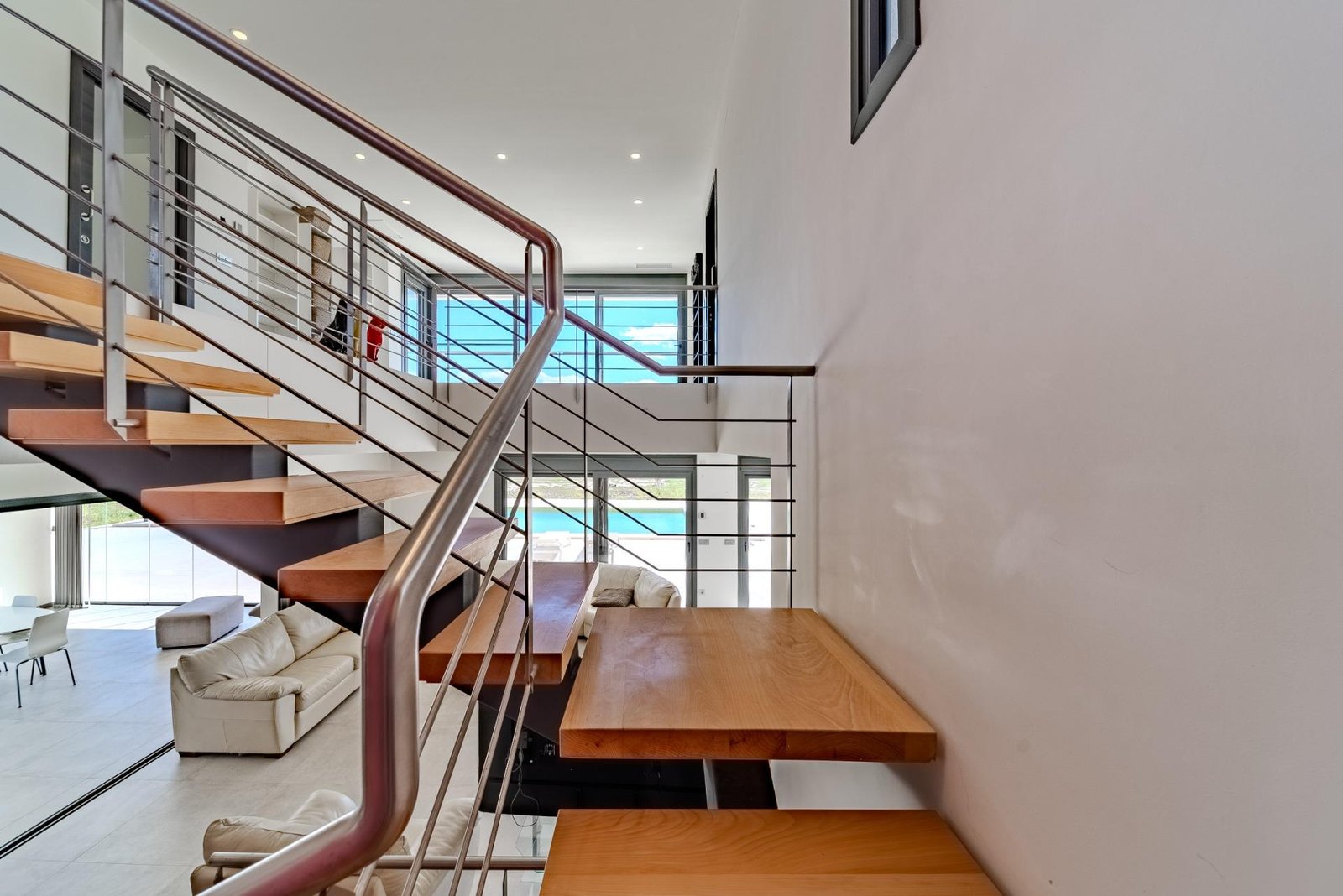 Nestled in La Marina del Pinet (Elche, southern Alicante), this stunning contemporary-style villa was built in 2016 on an expansive 10,600 m² plot, offering absolute tranquility and privacy. With optimal sun exposure throughout the day, it boasts 360° panoramic views of the countryside and surrounding mountains. Its strategic location ensures excellent connectivity: just 5 km from the beach, 3 km from La Marina village, 20 km from Elche and Torrevieja, and 25 km from Alicante Airport. A home designed for limitless living and enjoyment. Built with top-quality materials and no detail spared, this exceptional property delivers superior levels of comfort, security, and functionality: Anti-theft security windows Electric blinds and mosquito screens throughout Premium appliances and designer kitchen Full accessibility: elevator from basement to first floor, ramps, wide and sliding doors Natural light, open-plan design, and stunning views. The south-facing façade, which opens toward the pool, features expansive windows that fill the interior with natural light. On the main floor, a spacious fully equipped kitchen connects seamlessly to the open-concept living area. These spaces can be divided with elegant sliding glass doors for added versatility. The central island includes an induction cooktop and extends into a stylish table with seating for up to 12 guests. A laundry room with exterior access completes the space. From the living room, a large covered terrace is accessed through a retractable glass door. Accordion-style windows open completely to the north and south, creating a seamless indoor-outdoor experience. The terrace leads to a storage room, a summer kitchen with bar and indoor barbecue, and an outdoor bathroom. Also on this level is a guest bedroom with en-suite bathroom and a separate guest toilet. ️ Private spaces designed for total relaxation. Upstairs—accessible via elevator or stairs—you’ll find a bright, open-plan room ideal as an office, games room, or gym. From here, enter the luxurious primary suite featuring a fireplace, private terrace, large walk-in closet, and an expansive bathroom with a central freestanding tub, oversized shower, double vanity, and separate toilet. Two additional bedrooms with en-suite bathrooms and private terraces are also located on this floor. Multifunctional basement and dream garage. The basement level offers a versatile room with a private bathroom—perfect as a fifth bedroom, home office, cinema, or fitness room. The extra-large garage accommodates several cars, motorbikes, and bicycles, and houses the technical systems for the pool. A year-round private wellness retreat. The 12 x 6-meter pool includes a gradual beach-style entry, a deeper lap lane, and a UV purification system, allowing for nearly chlorine-free, healthy swimming. The elevated 3 x 3-meter jacuzzi, overlooking the pool, creates a serene, zen-like setting. A heat pump system ensures both the pool and jacuzzi can be enjoyed year-round. A solar-powered shower is located poolside. Eco-efficiency and sustainability. The rainwater and greywater collection and recycling system is fully operational and used to irrigate the gardens, trees, and lawn—an eco-conscious solution that enhances comfort while respecting the environment. Property Layout: Main floor: 168.40 m² Upper floor: 125.55 m² Basement: 186.30 m² ✨ Are you ready to discover your future home? A modern, private, and fully functional paradise, just minutes from the sea. This is more than a property—it’s a lifestyle. Contact us today to schedule your private visit. Your dream home is waiting!
