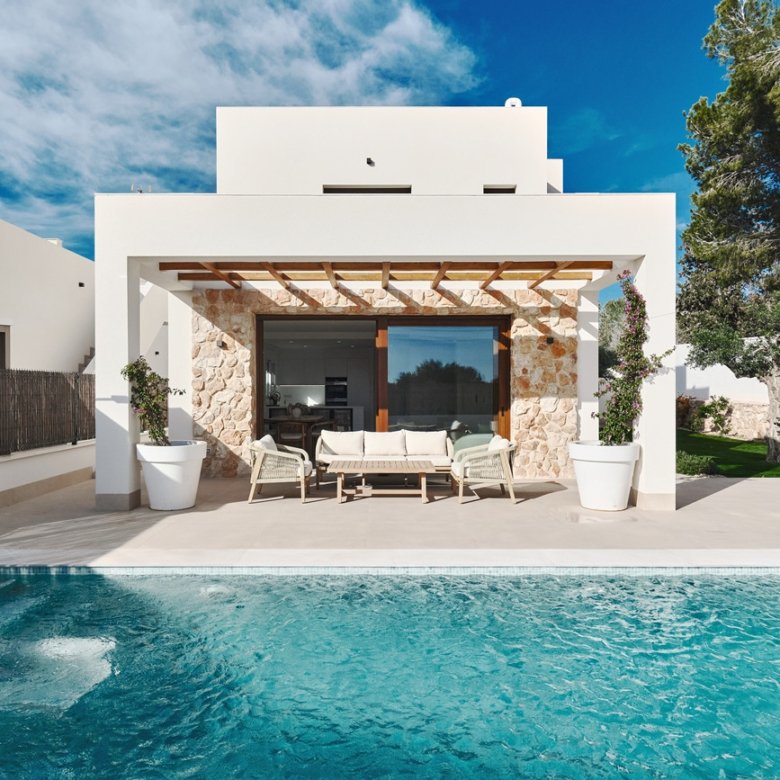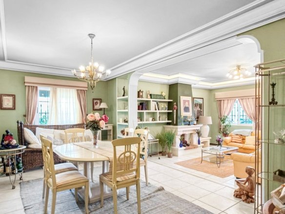 Located in the prestigious residential area of Molino Blanco, this exceptional luxury villa offers space, privacy, and an elevated Mediterranean lifestyle on a generous 800 m² plot. With a total built area of 440 m², the property is distributed over two main floors plus a fully equipped semi-basement designed as an independent living space — perfect for guests or extended family. The villa features six spacious double bedrooms and five fully equipped bathrooms, making it ideal for large families or those who enjoy hosting. Each level offers bright and elegant living and dining areas, creating multiple spaces to relax and entertain. At the heart of the home, you’ll find a large independent kitchen with direct access to the garden — perfectly designed for both everyday living and social gatherings. The outdoor areas truly elevate this property. A stunning private swimming pool is surrounded by a lush, landscaped garden, offering a peaceful and private retreat under the Mediterranean sun. A covered porch and pergola with a built-in barbecue create the perfect setting for unforgettable moments with family and friends. The property is equipped with modern comforts including centralized heating, air conditioning, and a full alarm system for security and peace of mind. Located within an exclusive residential complex, the community also benefits from ongoing maintenance services, including professional gardening, ensuring the surroundings remain pristine all year round.
