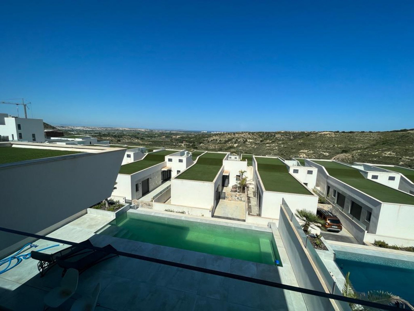 This luxury designed detached villa has stunning views over Guardamar and the Mediterranean Sea and is designed to fully enjoy the magnificent views towards the skyline of Guardamar. A combination of sea views, nature and a luxurious lifestyle within walking distance of Quesada and Rojales with all the amenities at hand. Sustainable design, high quality finishes and the unique location distinguish this villa as one of the best of the Costa Blanca. 5 en-suite bedrooms with terraces looking over the Sierra del Recorral. From the infinity pool you can enjoy the beautiful views and the nature that Rojales has to offer. On the ground floor there is a large open plan lounge/kitchen leading out to a sunny terrace with infinity swimming pool, a double bedroom with en-suite and a guest toilet. Upstairs there are two double bedrooms with en-suites. The basement has an english patio so there is natural light with two double bedrooms with en-suites opening into the english patio, a large games room/play area, sauna, shower room/toilet, a laundry room and garage. Includes Siemens Hob, Hood, Fridge, Dishwasher, Combi Oven/Microwave. Non residents tax 850 euros per year. The unique and sustainable villas of residential Oceanic are designed to fully enjoy the magnificent views towards the skyline of Guardamar. A combination of sea views, nature and a luxurious lifestyle within walking distance of Quesada and Rojales with all the amenities at hand. Sustainable design, high quality finishes and the unique location distinguish the Villas of Residential Oceanic as one of the best of the Costa Blanca.