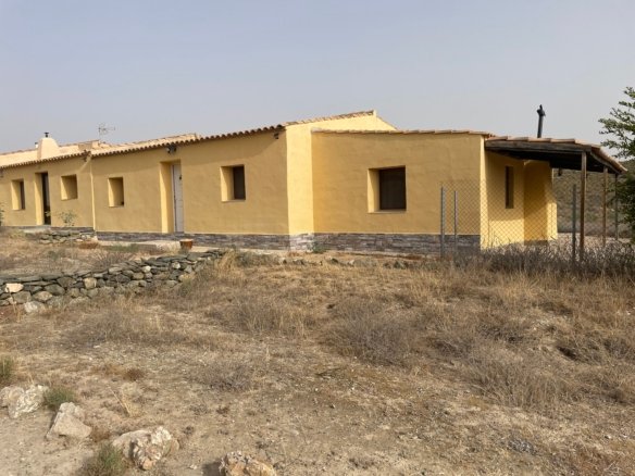 Off-grid living at it’s best with fantastic panoramic views! A lovely 6 bedrooms, 2 bathrooms semi-detached finca in La Pinilla, Murcia. You are getting 2 houses for the price of one as this unique property that was once one property has been divided into 2. Both have 3 bedrooms and 1 bathroom, log burners and are partly furnished. Great rental potential for any investors or a family home with separate dwellings/granny annex or can easily be knocked through again to make one large country home.The end property as you enter has a long hallway with 3 bedrooms and a large bathroom with bath, shower, hand basin and W/C. The spacious lounge has a log burner, wooden windows with shutters and wooden beams throughout. The large independent kitchen has grey upper and lower units, gas oven and hob and fridge freezer. It is partly furnished and comes complete with white goods. The living space is approx. 265 sqm.The middle property again has 3 bedrooms and 1 bathroom, lounge with log burner, storeroom, wooden beams and windows throughout. There is no fitted kitchen so this would need to be done. The large bathroom has a bath, shower, hand basin, bidet and W/C. The living space is approx. 151 sqm. Both properties have recently been rewired. The plot is 5,857 sqm and you have wonderful views all round. Access to the property is via a 5 minute drive off the tarmac main road between La Pinilla and Las Palas. The property is powered by an electric generator which is charged via solar panels. Water is via a 12,000 litre tank in the ground which pumps water to both properties from an electrical pump. There are gas fired boilers on both dwellings via gas bottles and dual wood stoves in the main lounges of both properties. All waste is via septic tanks.The property is located just outside the village of La Pinilla in Murcia. The property is only a 7 minute drive to there and 10 minutes to Las Palas. A further 5 minute’s drive is the much larger town of Fuente Alamo where you will find a good selection of shops, bars, restaurants, supermarkets, medical centre and markets. You have the PGA rated Hacienda del Alamo Golf Resort in Fuente Alamo and the beautiful beaches of Puerto de Mazarron, Isla Plana and Bolnuevo are 35 minutes away. The international airport of Murcia is just 25 minutes away, Alicante airport is 70 minutes. Please note…. This is off-grid living so there is no mains water, sewage or electricity.