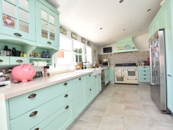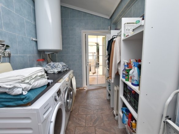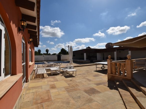 Luxury Country Villa with Stables for Sale in Heredades – Costa Blanca South This impressive detached villa with private pool, stables and paddock is set on a generous 2,200 m² plot in the charming village of Heredades, between Formentera del Segura and Almoradí. Offering spacious interiors, guest accommodation, and extensive outdoor living, it is a unique opportunity in this sought-after part of the Costa Blanca South. The main villa features four bedrooms and three bathrooms plus a cloakroom. The master suite has a walk-in wardrobe and a luxurious en-suite with both bath and shower. Two additional bedrooms also benefit from en-suite bathrooms, while a fourth room is currently fitted as a golf simulator but could easily serve as another bedroom. A large kitchen with dining area opens directly onto the terrace, enjoying views across the gardens and pool. Further highlights include a living room with integrated office space, a utility room, fitted wardrobes, air conditioning and heating panels. The property also offers independent guest accommodation with two bedrooms, bathroom, kitchen and living space – perfect for visiting family or potential rental. Outside, a private swimming pool with tiled terraces is complemented by a summer kitchen, BBQ, covered seating areas, mature gardens and a carport. Equestrian facilities include three stables, a tack room and a paddock, offering a rare lifestyle opportunity. Heredades is a traditional Spanish village with amenities close by, while Formentera del Segura, Rojales, Benijófar and Ciudad Quesada provide shopping, restaurants, golf and leisure options within minutes. The beaches of Guardamar del Segura can be reached in 15 minutes, and Alicante Airport is just 35 minutes away. This villa combines modern comfort with countryside charm and is ideal as a permanent residence, holiday retreat or investment property.