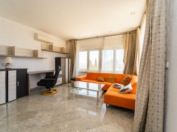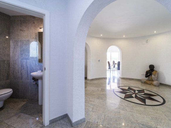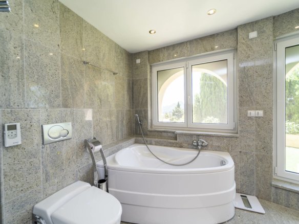 This magnificent villa, built on a plot of 2600 m2, is located on three floors as follows: on the first floor there are 2 bedrooms with Italian designer furniture, two bathrooms with shower and whirlpool bath, walk-in closets, a kitchen with a breakfast bar, a pantry. Room and relaxation area with Jacuzzi, whirlpool, sauna. From this area, you can directly access the pool. On the first floor, there are separate apartments with a kitchen, a bathroom with a whirlpool bath, a toilet, a laundry room, a large kitchen, a dining room, a living room with a fireplace, a pantry, and a huge terrace. This floor is connected to a barbecue area. From here, there is a beautiful view of the sea, mountains, and the city of Calpe.On the second floor, there are three large bedrooms with built-in wardrobes, a bathroom, a large terrace, and a laundry room. All finishes are of the highest quality, Daikin air conditioners in all rooms, Weru glass windows, heated floors, alarm system, internet, satellite TV, automatic blinds, video intercom. The villa has water and sound insulation. There are two garages for three cars and a storage room. The house has a 300-liter water heater. The floor inside the house is made of Indian granite, and outside the house, it is made of natural stone. The pool is equipped with a water filtration system with salt and ultraviolet rays. Areas with light sensors inside and outside the house. It is located just a 5-minute drive from the city and beautiful beaches.By buying property in Spain, you can obtain residency in Spain. Our company helps to obtain any type of residency permit.