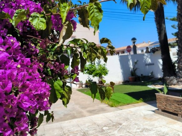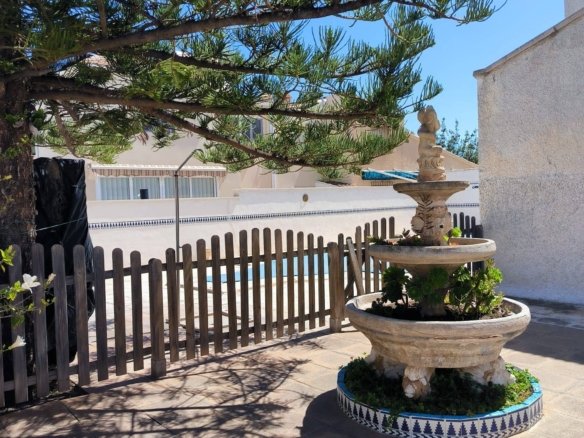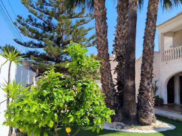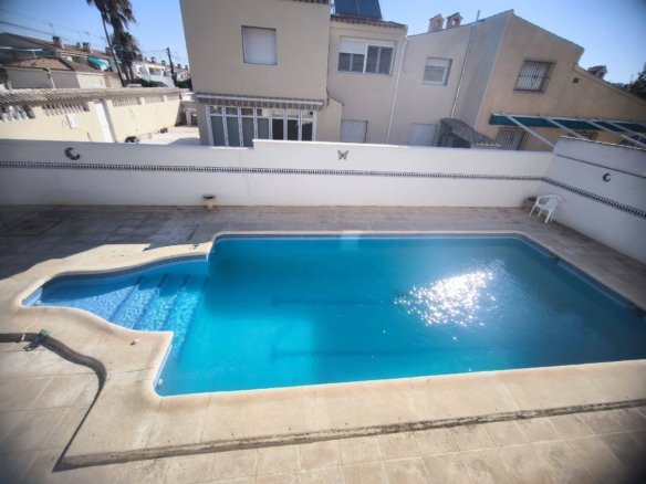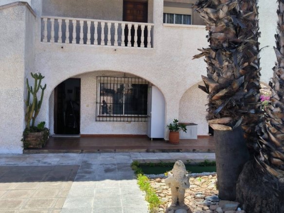 Stunning Semi-Detached House in Cabo Roig – Orihuela Costa Experience the Mediterranean at its finest! This magnificent semi-detached house in Cabo Roig, just 1 km from the beach, combines spaciousness, comfort, and a privileged location. Built Area: 200 m² Private Plot: 405 m² Bedrooms: 7 doubles Bathrooms: 4 Orientation: Southwest The house is in good condition and ready to move into. It has a fully equipped kitchen, tiled and laminated floors, wooden exterior carpentry, and a thoughtful layout designed for the comfort of the entire family. Highlights: Private pool Large garden and barbecue area Patio and sun terrace with unobstructed sea views Fireplace, high ceilings, and air conditioning with hot/cold pump Built-in wardrobes in all rooms Furniture included Storage room and parking space Charming balcony Location and amenities: Surrounded by all amenities: Bus stops – Green areas – Shopping centers – Hospitals and medical centers – Schools – ⛳ Golf courses – Coast – Children’s areas A quiet residential area, yet well connected, ideal as a primary residence, second home, or investment for vacation rentals.