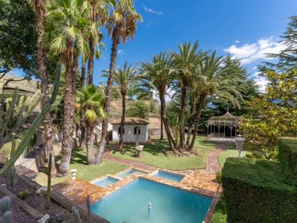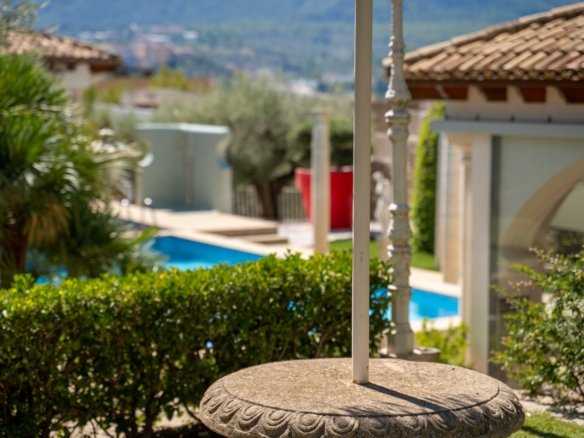 Luxury Estate in Alcoy with Panoramic Valley Views – 7 Bedrooms, Private Pool, and Exclusive Gardens Discover this exclusive luxury estate in Alcoy, located in one of the city’s most prestigious residential areas. Alcoy, known for its privileged natural environment, high quality of life, and exceptional services, offers a unique property combining privacy, spaciousness, and elegance just 50 minutes from Alicante. Key Features: Large 20,000 m² plot in an elevated position with unobstructed panoramic views of the Alcoy valley. Main house of 450 m² distributed over three floors plus a 120 m² terrace perfect for enjoying the Mediterranean climate and views. Seven spacious bedrooms, including a master suite with private terrace, en-suite bathroom, and large walk-in closet. Four full bathrooms strategically placed throughout the house. Fully equipped main kitchen and auxiliary kitchen with direct access to a covered garage for four vehicles. Large living rooms with fireplaces, including the main dining room, entrance lounge, and two additional lounges for multiple uses. Cooled wine cellar, private office, and sitting room with access to a service terrace for leisure and work. Wellness area with jacuzzi, sauna, squash court, and indoor bowling alley for an exclusive and healthy lifestyle. Private outdoor pool and outdoor dining area for gatherings in a natural setting. Professionally designed gardens over 800 m² with rest areas, ornamental fountains, and mature vegetation ensuring an exclusive and relaxing atmosphere. Location and Usage Potential: This luxury estate in Alcoy is situated in a protected natural environment with excellent access to Alcoy’s center, where you find hospitals, schools, universities, and first-class cultural and commercial services. Perfect as a family residence seeking space and comfort, a high-end vacation home, or a boutique investment for private retreats, exclusive events, or luxury accommodation.