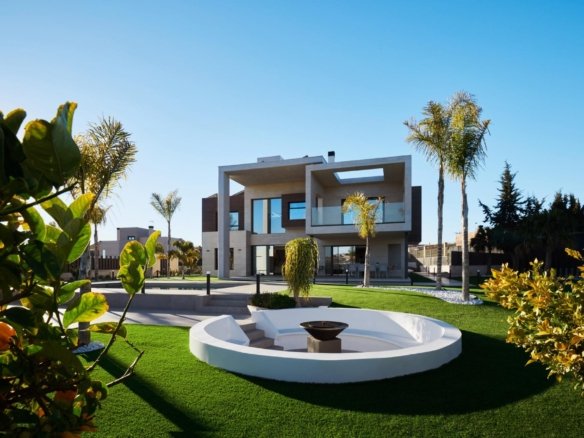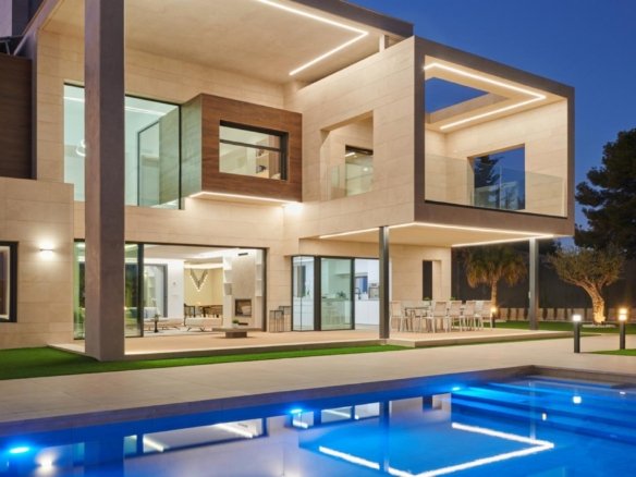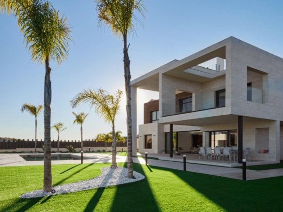 Impressive villa built in 2020 on a plot of almost 2.000m2 in the prestigious area near Murcia, with unique design and exceptional qualities. . . This villa offers you an exclusive home with much more than you can imagine, in terms of luxury, comfort, space, security and sustainability.. – 7 bedrooms, 2 of them on the ground floor. The master bedroom has a dressing room. – 5 complete bathrooms, 3 of them en-suite, plus 1 guest toilet. – 60m2 garage with electric car charger. – Laundry room. – Fantastic swimming pool with pre-installation for heating and jacuzzi.. – Underfloor heating throughout the house. – Aerothermics . – Ducted air conditioning. – Glazed fireplace. – Solar panels 8kw. – Barbecue. – Panic room. – Pre-installation for lift. – Electric blinds. – Integral security system, including alarm, reinforced walls and reinforced doors. – Cinema screen in master bedroom. – Automatic irrigation system. . Distributed over 2 floors plus solarium terrace, with large windows and large and bright spaces and 200m2 of porches, on a plot of almost 2.000m2, with a fantastic swimming pool and beautiful landscaped areas.. . Located in Los Conejos, a prestigious area close to Murcia, this villa offers you the opportunity to live a life of luxury, tranquillity and total security. Its privileged location also offers green and mountain views, proximity to natural surroundings and at the same time being close to all the necessary services and only 30 minutes from the international airport of Murcia and 45 minutes from the beach.