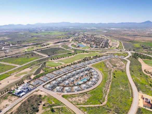 Exclusive Frontline Golf Villas in Hacienda del Álamo, Costa Cálida Modern Villas in One of Spain’s Top Golf Resorts Discover a unique opportunity to own a luxury new-build villa on the front line of Hacienda del Álamo Golf Resort, located between the historic cities of Cartagena and Murcia, in the heart of Costa Cálida. These contemporary villas are designed for comfort, privacy, and elegance, set within an exceptional golf and leisure environment. Each property offers a spacious layout with 3 bedrooms, 2 bathrooms, and a guest toilet, across a single or double-level design, depending on the chosen model. With generous plots starting from 700 square meters and a built area of 146 square meters, these homes provide ample space for both indoor and outdoor living. High-Quality Features and Finishes These frontline villas are equipped with modern amenities to ensure maximum comfort and style, including: Private swimming pool and landscaped garden with drip irrigation system Fully fitted kitchen with cabinetry and appliances included Ducted air conditioning throughout the property Bathrooms with furniture, mirrors, and shower screens Aluminium windows with thermal break and double glazing Access to a large community pool with natural grass and a children’s area Luxury Living in Hacienda del Álamo Golf Resort Hacienda del Álamo is renowned for being one of Spain’s best golf resorts, offering residents a lifestyle of relaxation, sport, and convenience. 18-hole Championship Golf Course and Academy Sports facilities including tennis, paddle, gym, and fitness classes Main Clubhouse with panoramic views, a restaurant serving Mediterranean cuisine, and sunny terraces 4-star Hotel & Spa for relaxation and wellness Family-friendly spaces, including children’s play areas, swimming pools, and biking trails Traditional Spanish Village with shops, cafés, and new dining venues coming soon Strategic Location with Excellent Connectivity Corvera Airport (Murcia): 18 km (approx. 15 minutes) Cartagena: 36 km Murcia city center: 40 km Mar Menor beaches: 28 km Shopping centers (Dos Mares, Espacio Mediterráneo): within 30 km Your Golfside Dream Home Awaits Whether you are looking for a permanent residence, a holiday retreat, or a smart investment in the Costa Cálida, these frontline golf villas in Hacienda del Álamo are a perfect match. Contact us today to learn more or to arrange a personalized visit.