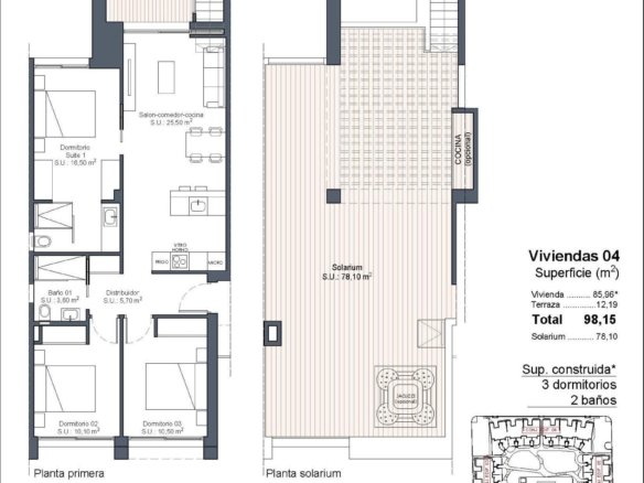 Exclusive New Build Properties in Lo Marabú, Ciudad Quesada Modern Design and Maximum Comfort in a Mediterranean Setting Discover this spectacular residential complex in Lo Marabú, Ciudad Quesada, comprising 80 2 and 3 bedroom homes with 2 bathrooms. Designed with a modern and efficient approach, these properties offer spacious terraces, cross ventilation and high quality finishes to maximise comfort and energy efficiency. The ground floor properties have private gardens, while the top floor properties have private solariums with pre-installation for a Jacuzzi and outdoor shower. In addition, the development has communal swimming pools surrounded by gardens, creating a perfect environment for relaxation and conviviality. High Quality Features for an Exclusive Lifestyle Each home has been designed to offer maximum comfort, with top quality materials and a contemporary design: Large sliding aluminium windows with thermal break. Motorised blinds for greater comfort. Climalit 4+4/14/4/4+4 glazing for thermal and acoustic insulation. Armoured front door with security lock. Fully fitted kitchens with electrical appliances included. Bathrooms with furniture, mirrors and shower screens. 150L aerothermal system for hot water. Complete installation of ducted air conditioning (hot/cold). Lighting in all rooms already incorporated. Parking space included. Thanks to its double façade design, the homes offer natural cross ventilation, providing coolness in summer and reducing energy consumption in air conditioning. Privileged location in Ciudad Quesada Lo Marabú is an exclusive residential area within Ciudad Quesada (Rojales), surrounded by natural spaces and with all services within easy reach. The urbanization is very close to the salt lakes of La Mata and Torrevieja, an ideal environment to enjoy nature and improve your wellbeing. From your new home, you will have quick access to the main points of interest in the area: Guardamar del Segura and Torrevieja beaches – 10 km (15 minutes by car). Alicante-Elche Airport (ALC) – 38 km (35 minutes by car). Murcia-Corvera Airport (RMU) – 65 km (50 minutes drive). Prestigious golf courses – Less than 5 km. Shopping centres and restaurants – Just a few minutes away. Quick access to the AP-7 and N-332 highways, connecting to the whole of the Costa Blanca. A Perfect Home for Enjoying the Mediterranean With their combination of modern design, strategic location and exceptional natural surroundings, these homes in Lo Marabu are ideal for permanent residence, holiday home or investment property. Don’t miss out on this unique opportunity. Contact us today for more information or to arrange a viewing of your future home in Ciudad Quesada.